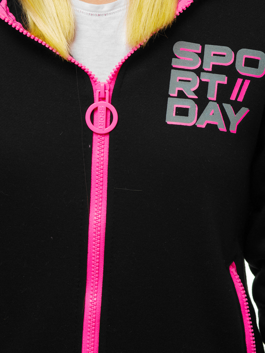 Puloverul este fixat cu fermoar. Are o glugă practica care va fi perfecta pentru zilele putin mai reci, cu vant. Puloverul are buzunare pe părțile laterale cu fermoare, în care puteți ascunde chei, un telefon sau un portofel. Partea de jos și mânecile sunt finisate cu niște suduri care îi conferă un caracter sportiv. Datorită imprimeului pe față și pe mânecă, hanoracul arată foarte original. Este confecționat dintr-o combinație de bumbac și poliester, ceea ce îl face să se potrivească frumos corpului, confortabil de purtat, plăcut la atingere, nu se întinde nu se încrețește.