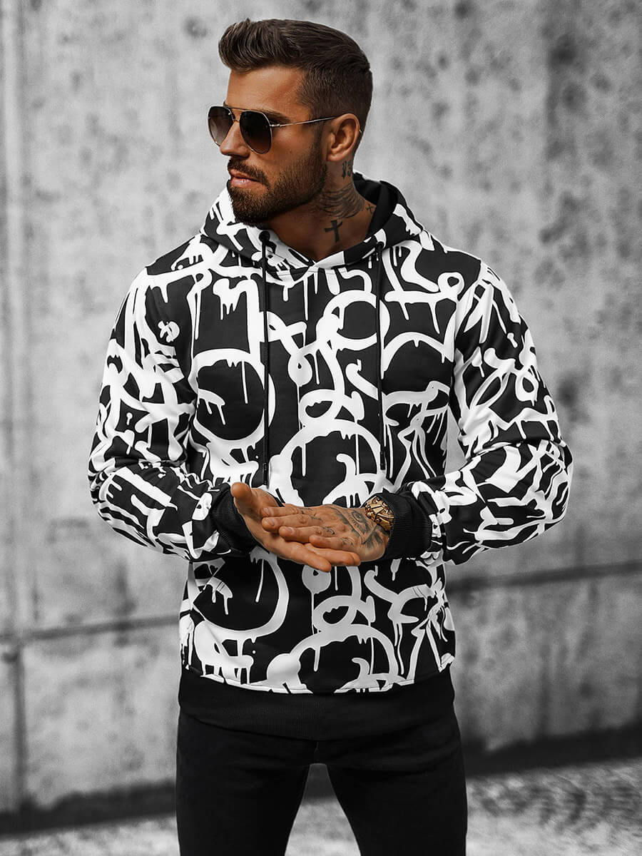 Hanorac bărbați negru-alb OZONEE JS/8B1152/1