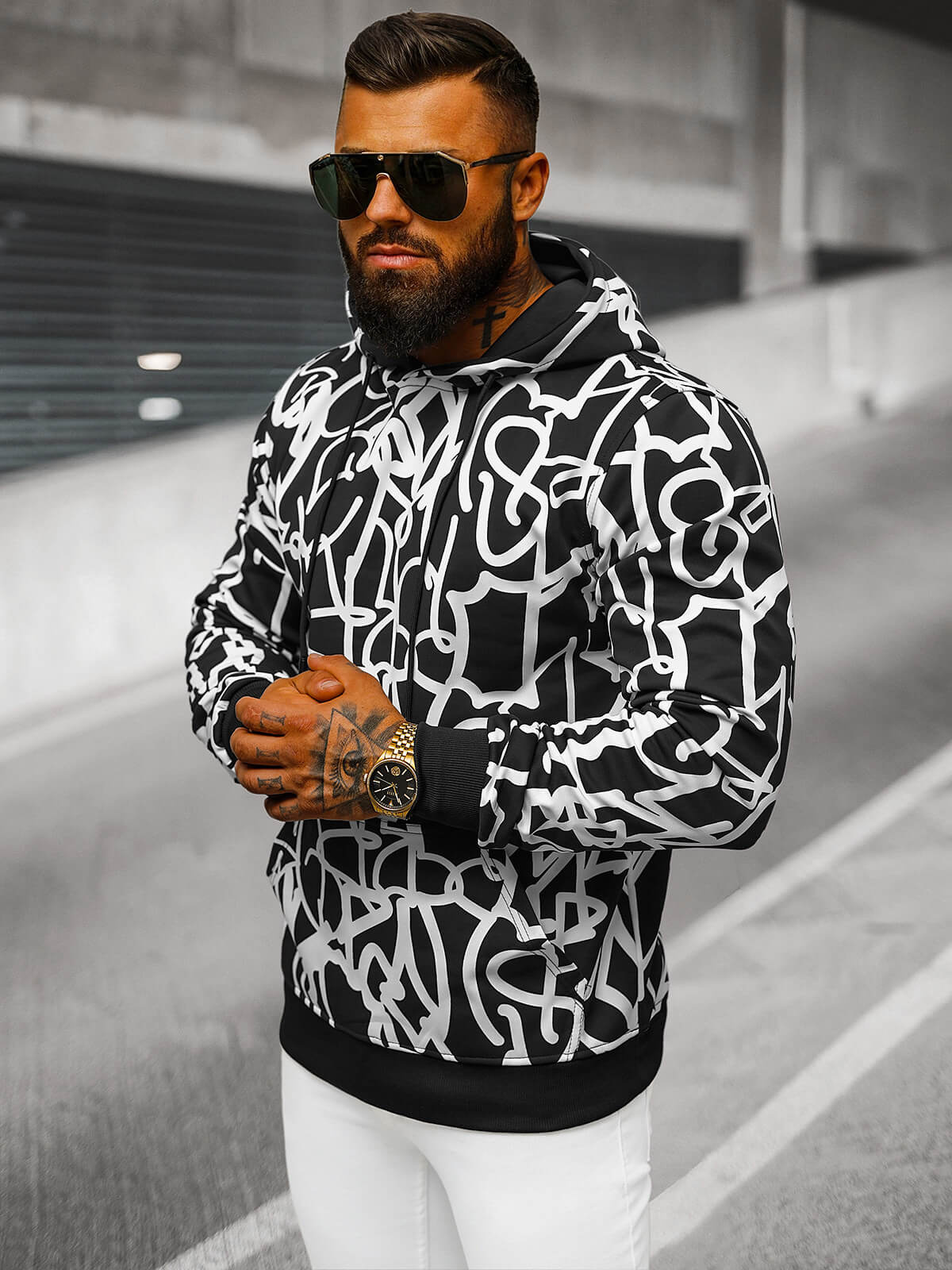 Hanorac bărbați negru-alb OZONEE JS/8B1139/1