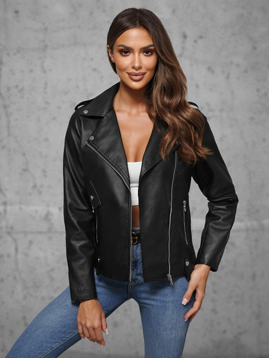 Geacă de piele pentru femei neagră OZONEE JS/11Z8060