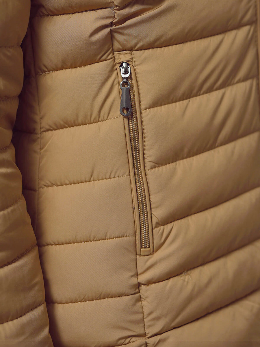 Geaca de damă din cea mai nouă colecție nu numai că va satisface nevoia ta de confort, dar va exprima și stilul tău unic. Cu capitonajul modern și buzunarele practice pe laturi, această geacă combină eleganța cu funcționalitatea. Mânecile finisate cu mansete îi conferă un aspect rafinat, iar materialul din 100% poliester garantează confort și durabilitate. Modelul (178 cm) poartă mărimea M.
