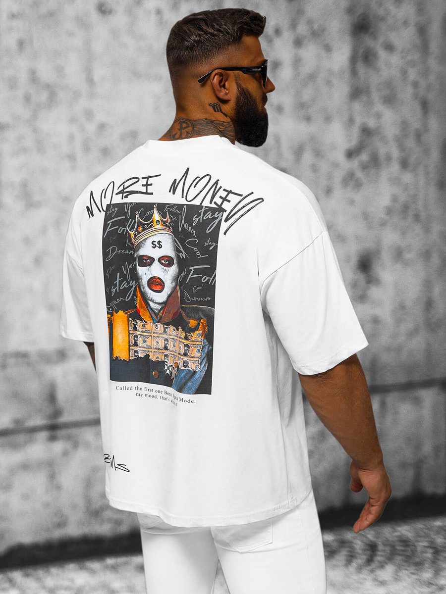 Acest tricou bărbătesc oversize din cea mai recentă colecție nu este doar o piesă confortabilă de îmbrăcăminte. Datorită imprimeului efectuos de pe spate, devine un accesoriu remarcabil pentru garderoba oricărui bărbat. Fabricat din țesătură confortabilă, compusă din 92% bumbac și 8% elastan, oferă nu doar confort, ci și stil. Fie că îl combini cu blugi sau cu pantaloni eleganți, se va potrivi perfect.