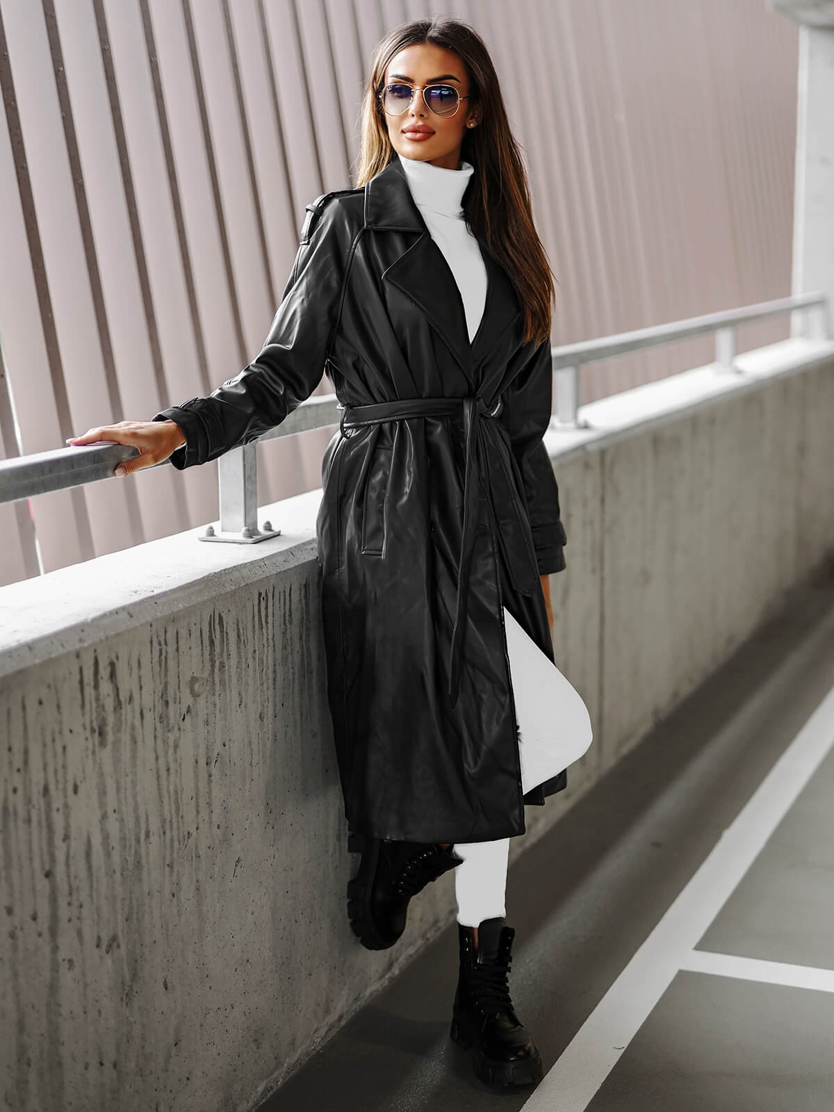 Eleganță și stil cu paltonul de damă din piele ecologică OZONEE JS/11Z8100!