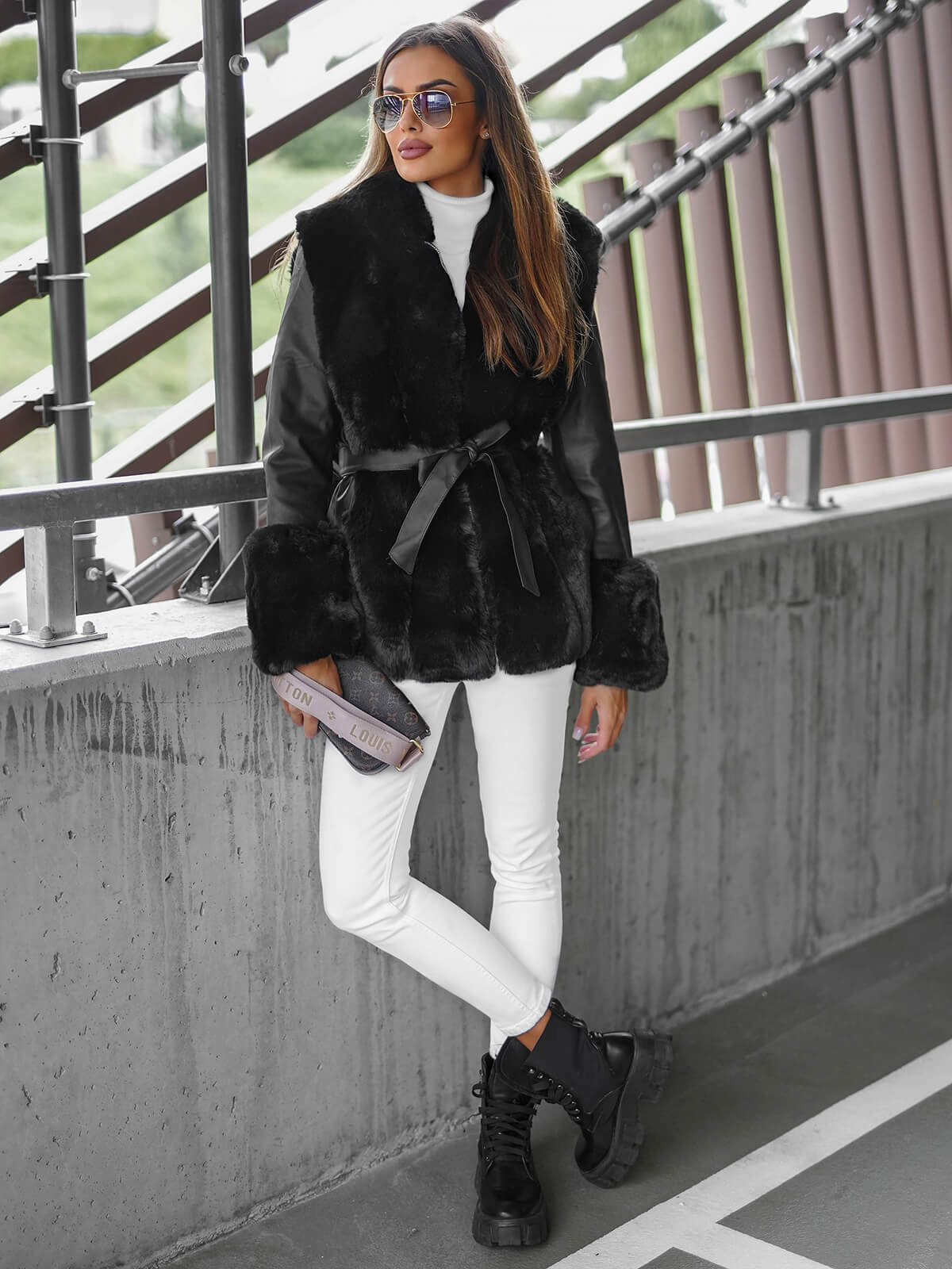 Această geacă pentru femei este perfectă pentru zilele friguroase de iarnă, adăugând o notă de eleganță ținutelor tale. Designul cu imitație de piele și blană artificială îți va permite să o combini cu diverse stiluri de îmbrăcăminte, fie că este vorba de o ținută casual sau una mai elegantă. O poți asorta cu jeans, pantaloni chino sau o fustă simplă.