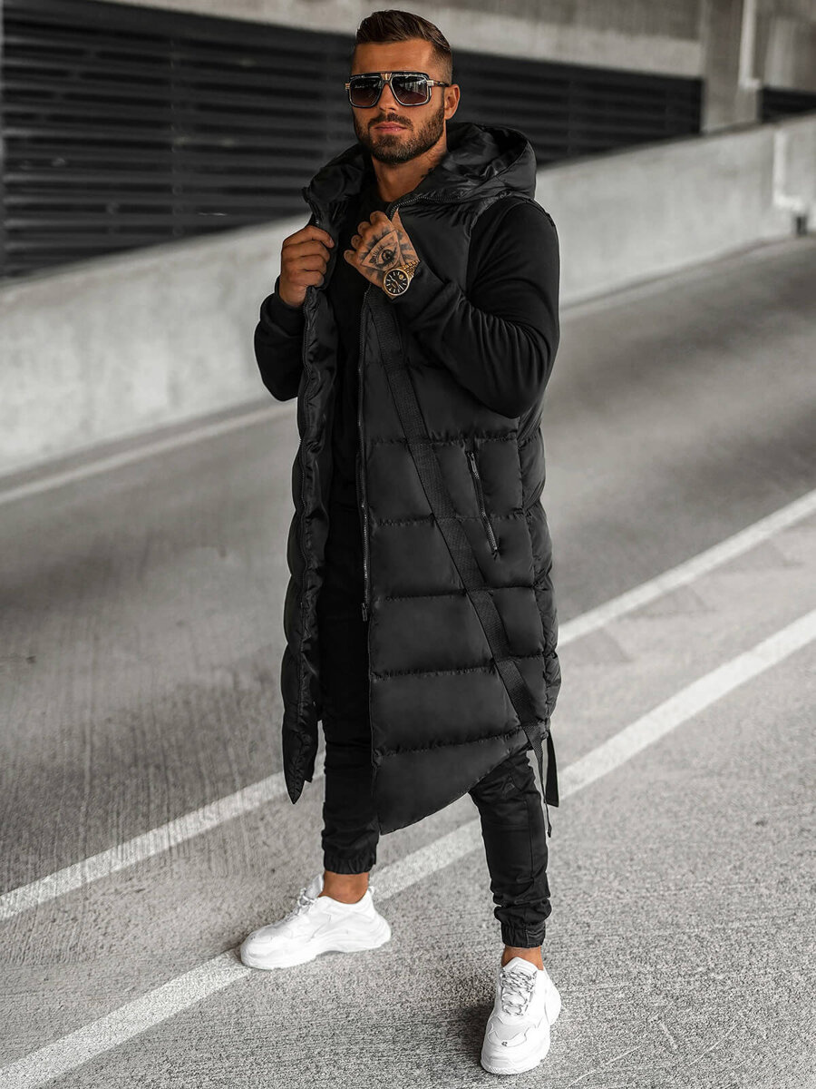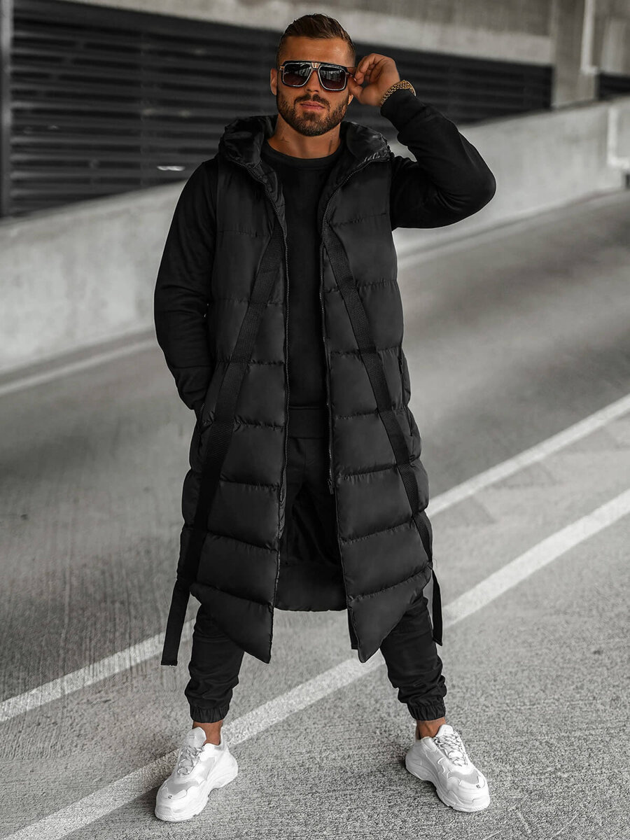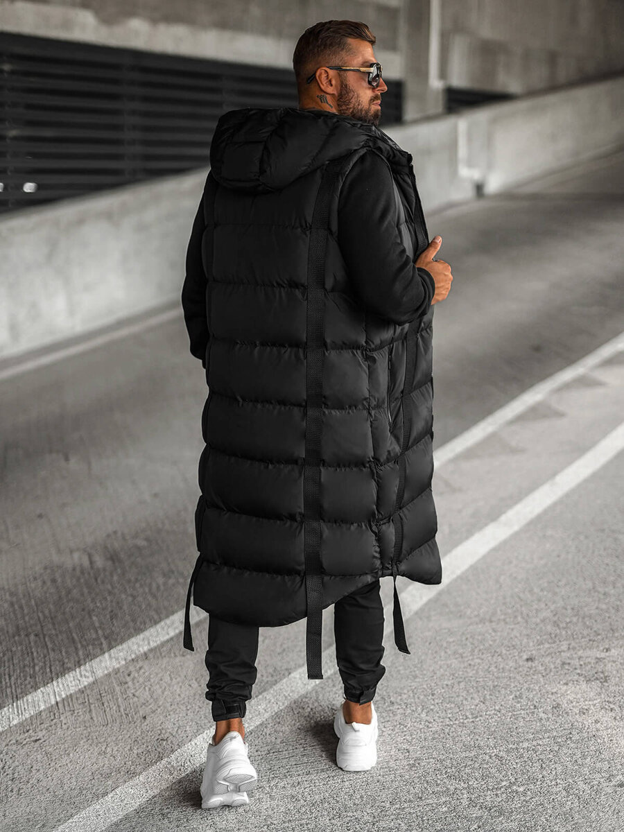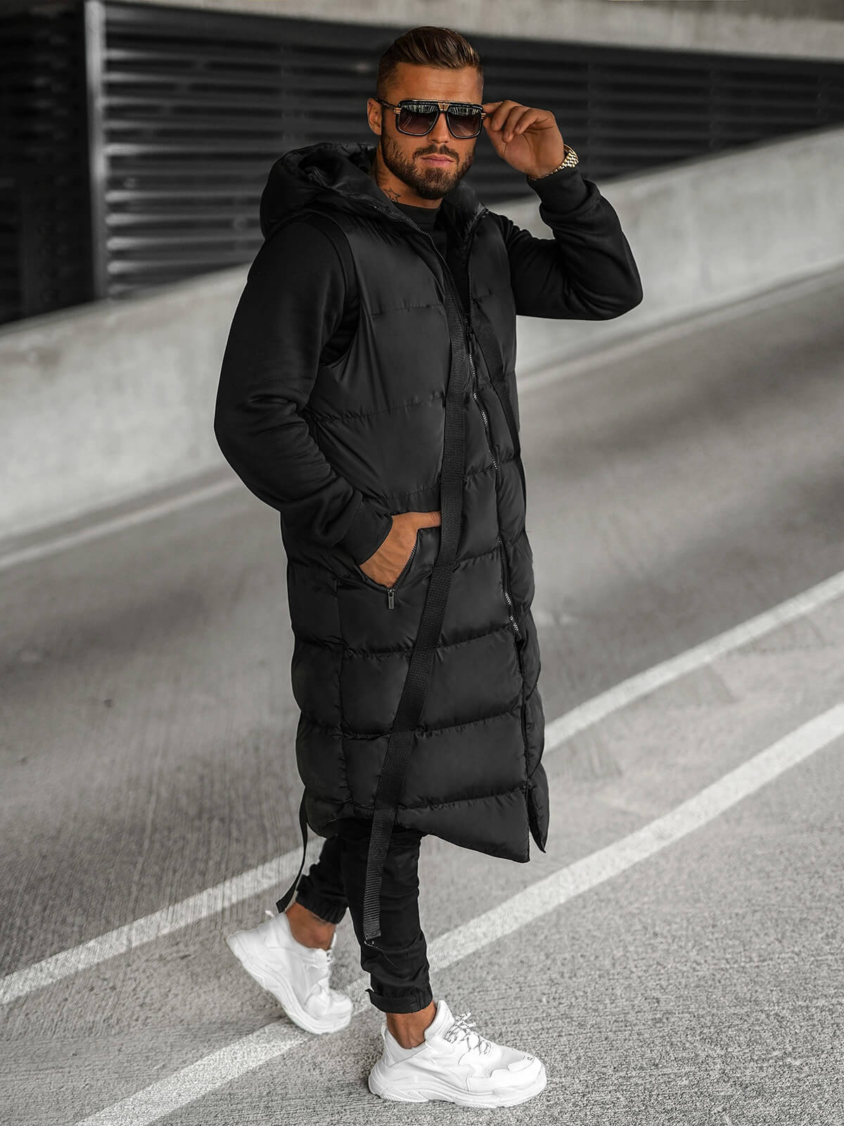 Vesta lungă matlasată pentru bărbați cu glugă neagră OZONEE O/M3201Z