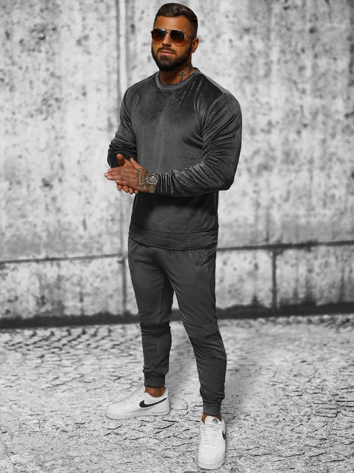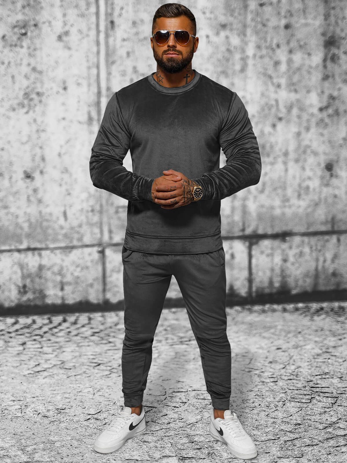 Confort și stil într-unul singur - Set trening bărbătesc din catifea grafit OZONEE JS/8C1167/6