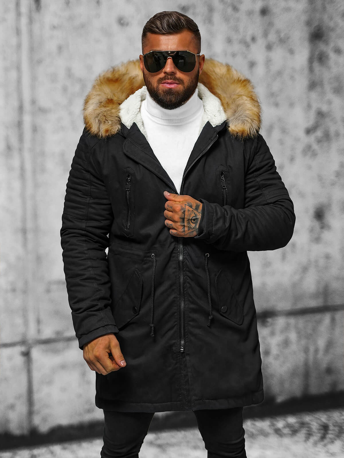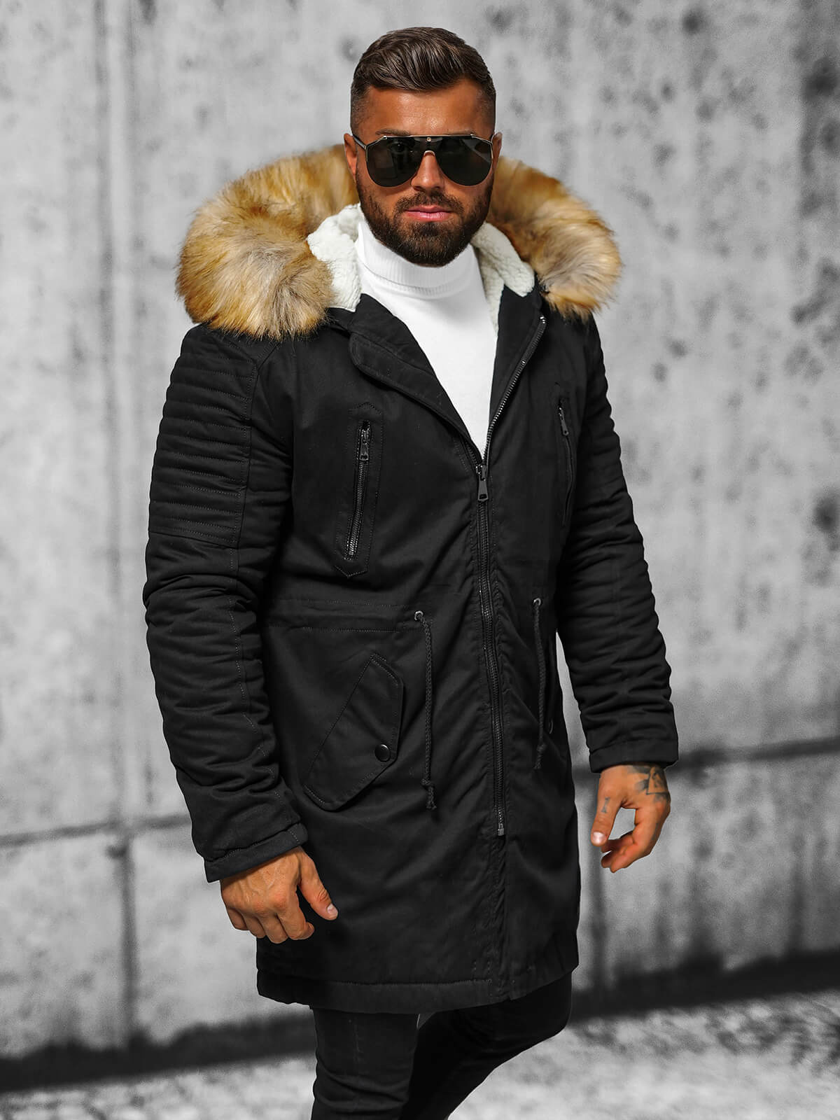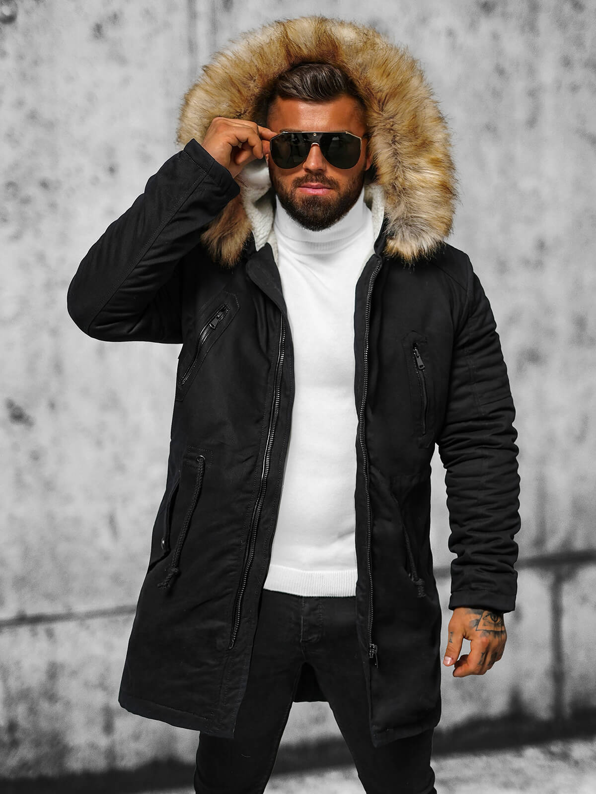 Jachetă de iarnă elegantă și practică pentru bărbați parka cu blană neagră OZONEE JD/390