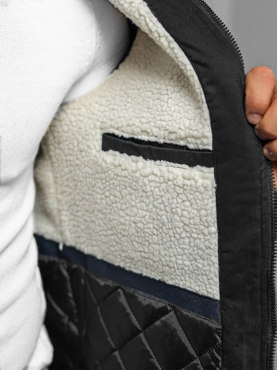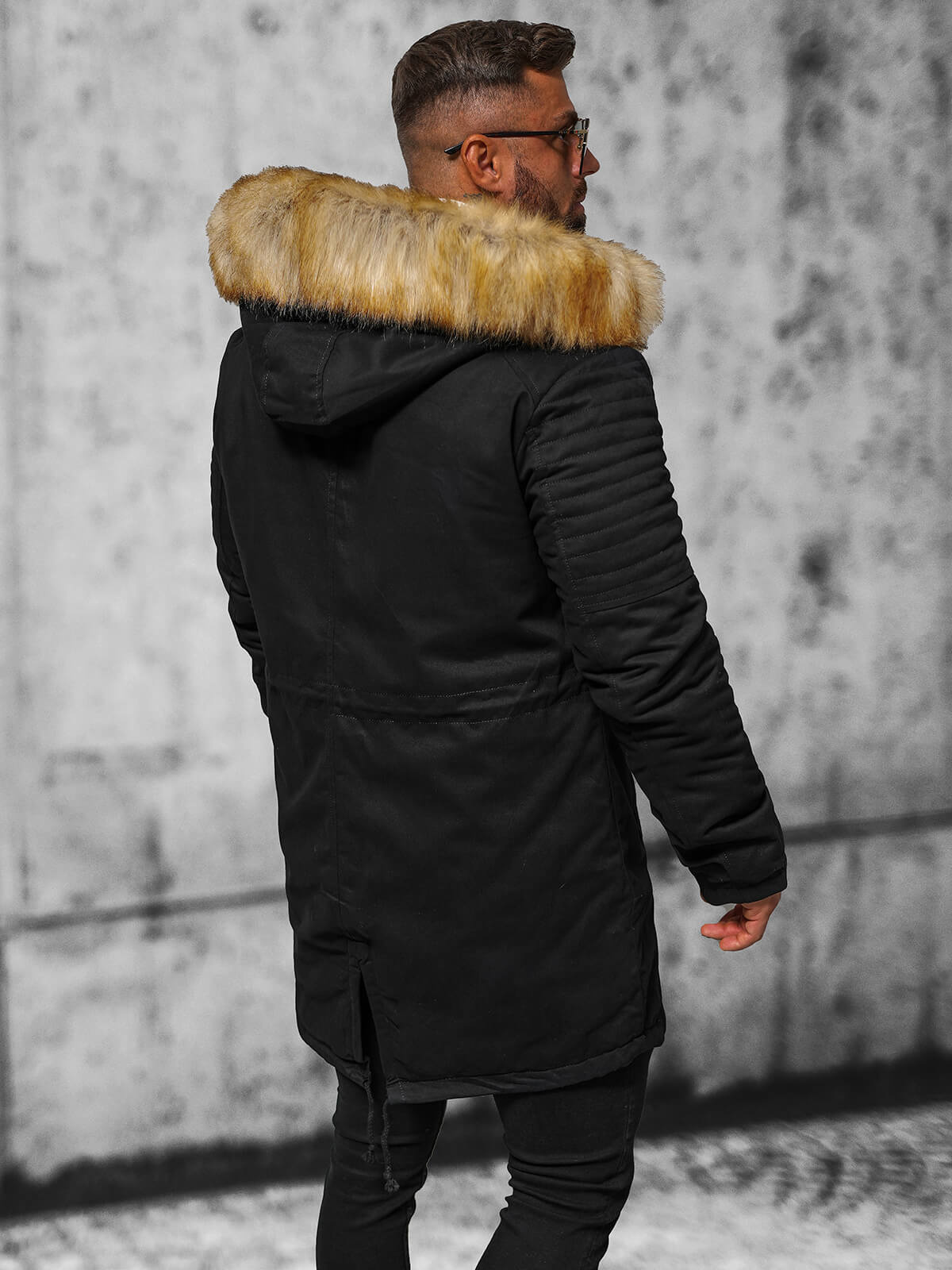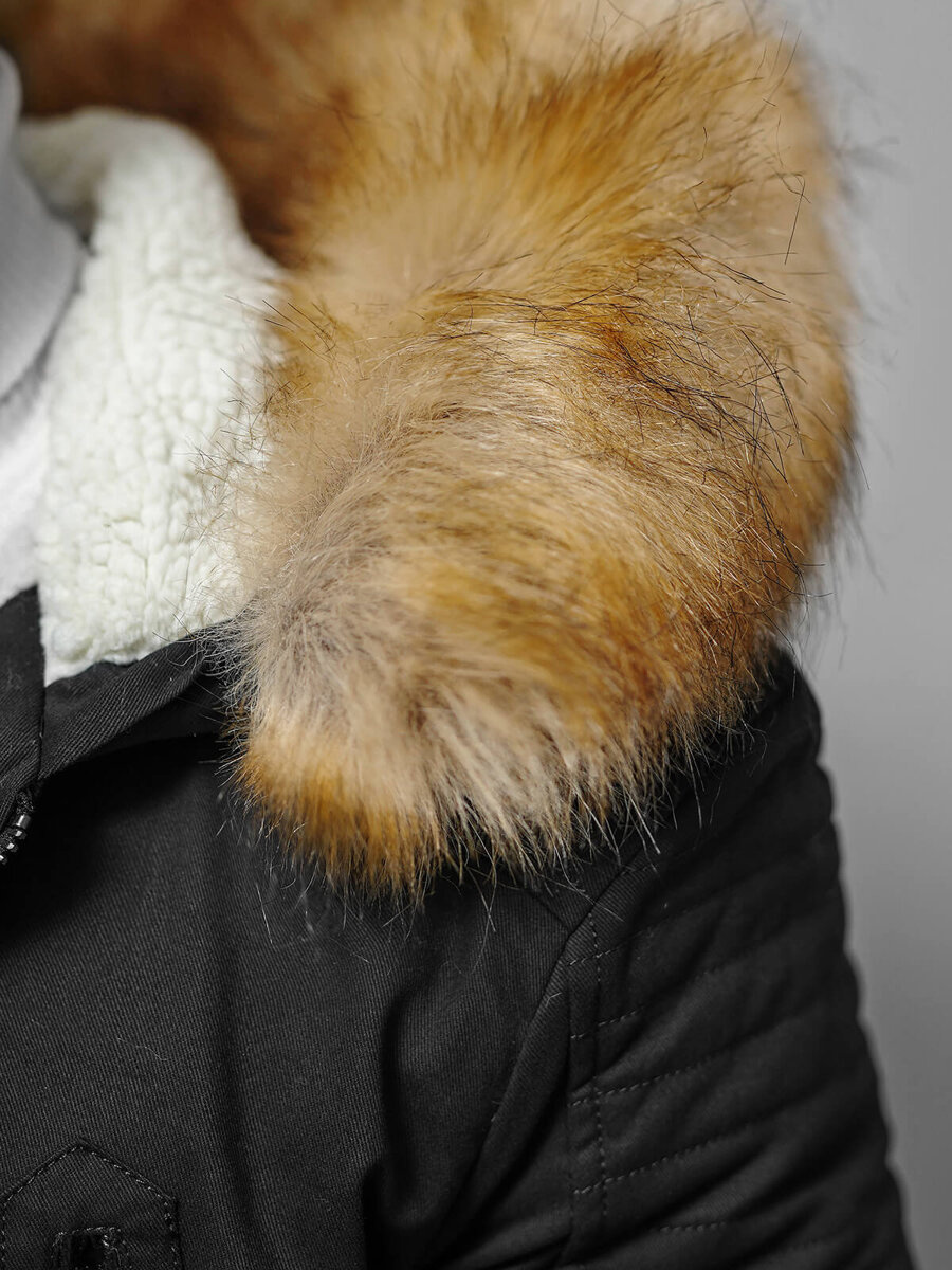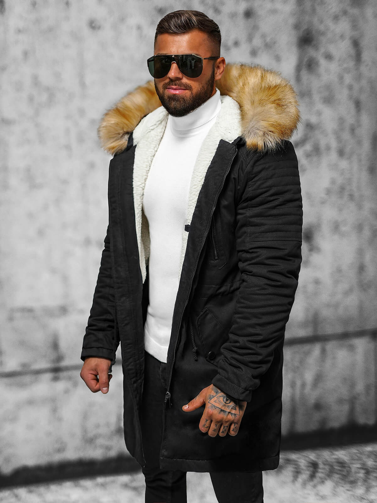Jachetă de iarnă elegantă și practică pentru bărbați parka cu blană neagră OZONEE JD/390