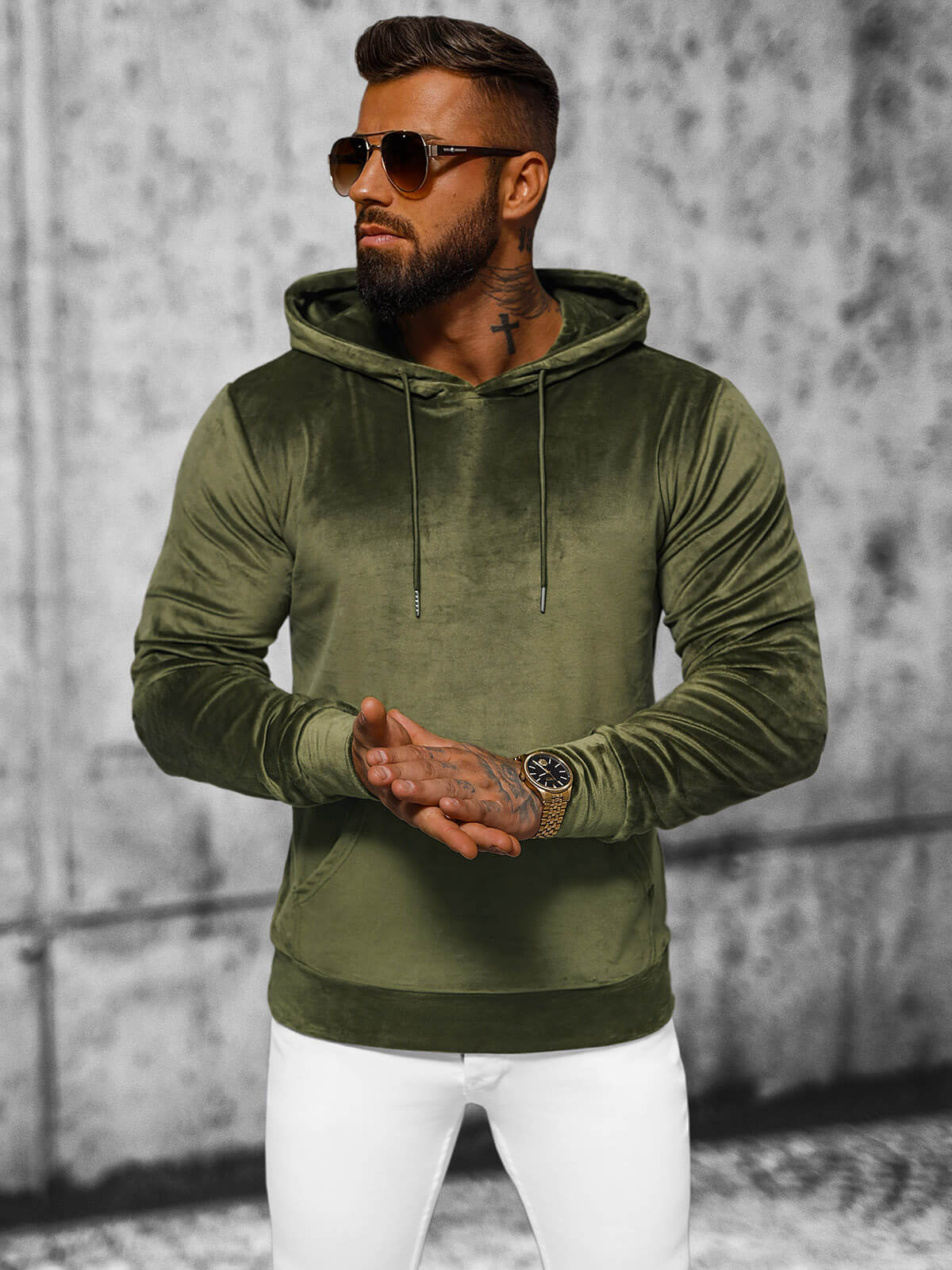 Hanorac cu glugă din velur kaki pentru bărbați OZONEE JS/8B1170/29 - stil și confort în același timp