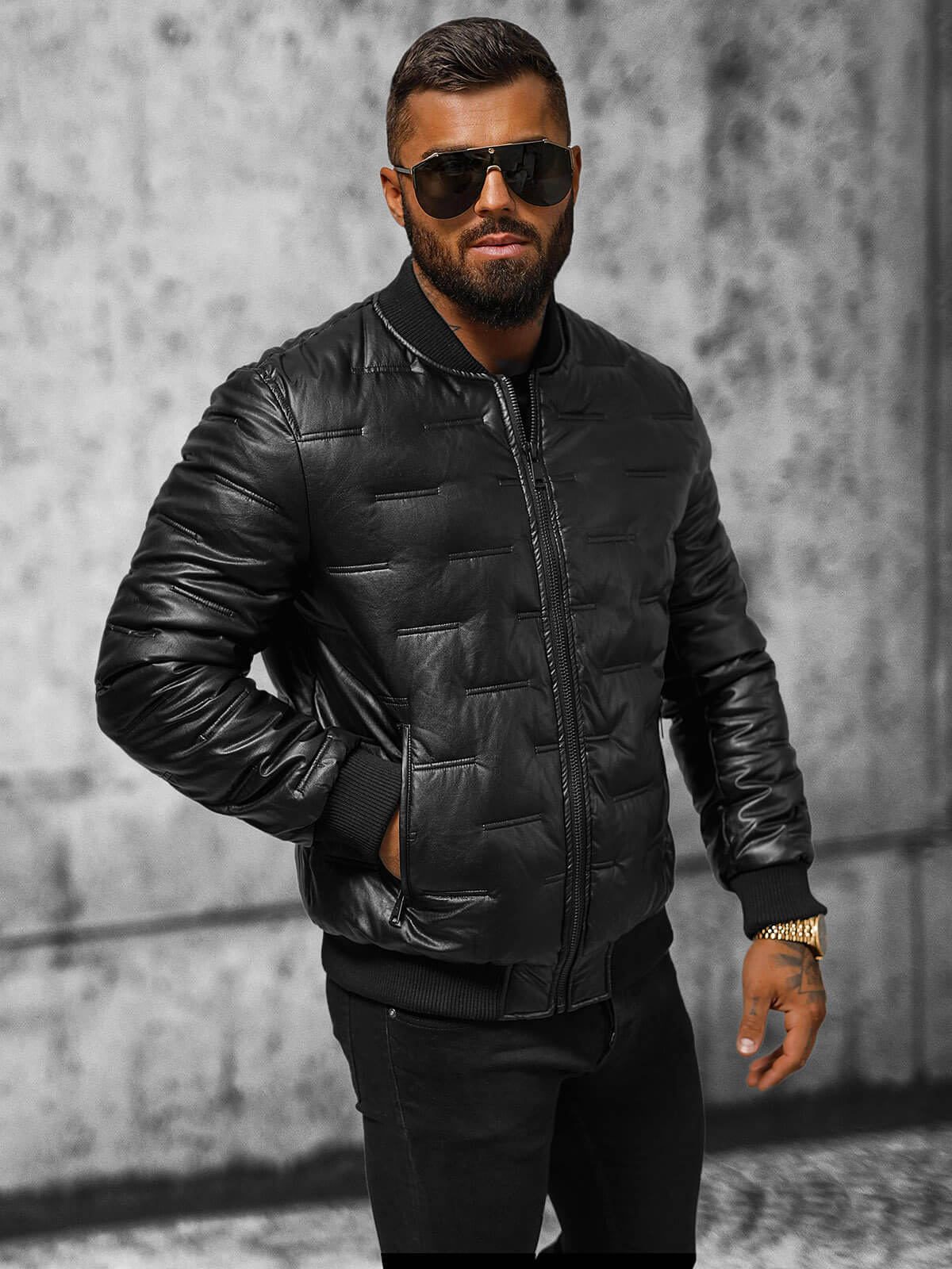 Jacheta pentru bărbați OZONEE prezentată este o combinație de stil clasic și tendințe moderne. Confecționată din materialu imitând pielea, aceasta oferă nu numai un aspect elegant, ci și confort și comoditate de purtare. Matlasarea la modă îi adaugă caracter, subliniind stilul individual al fiecărui bărbat. În plus, izolația din interiorul jachetei o face o alegere ideală pentru zilele mai reci.