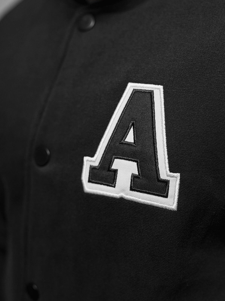 Caracteristici principale ale produsului: Are aplicație cusută cu litera A, Baza și mânecile finisate cu mansete elastice, Buzunare laterale.