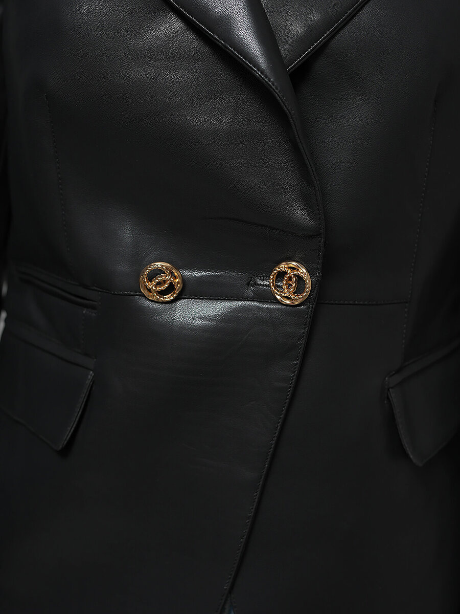 Jacheta pentru femei prezentată din cea mai recentă colecție a brandului OZONEE este chintesența stilului și a confortului. Confecționată din materialu imitând pielea, nu este doar la modă, ci și extrem de practică. Cu o închidere cu nasturi și buzunare laterale, este completarea perfectă pentru orice garderobă. Finisajul negru îi conferă o notă elegantă și versatilă, care se potrivește cu o varietate de stiluri.