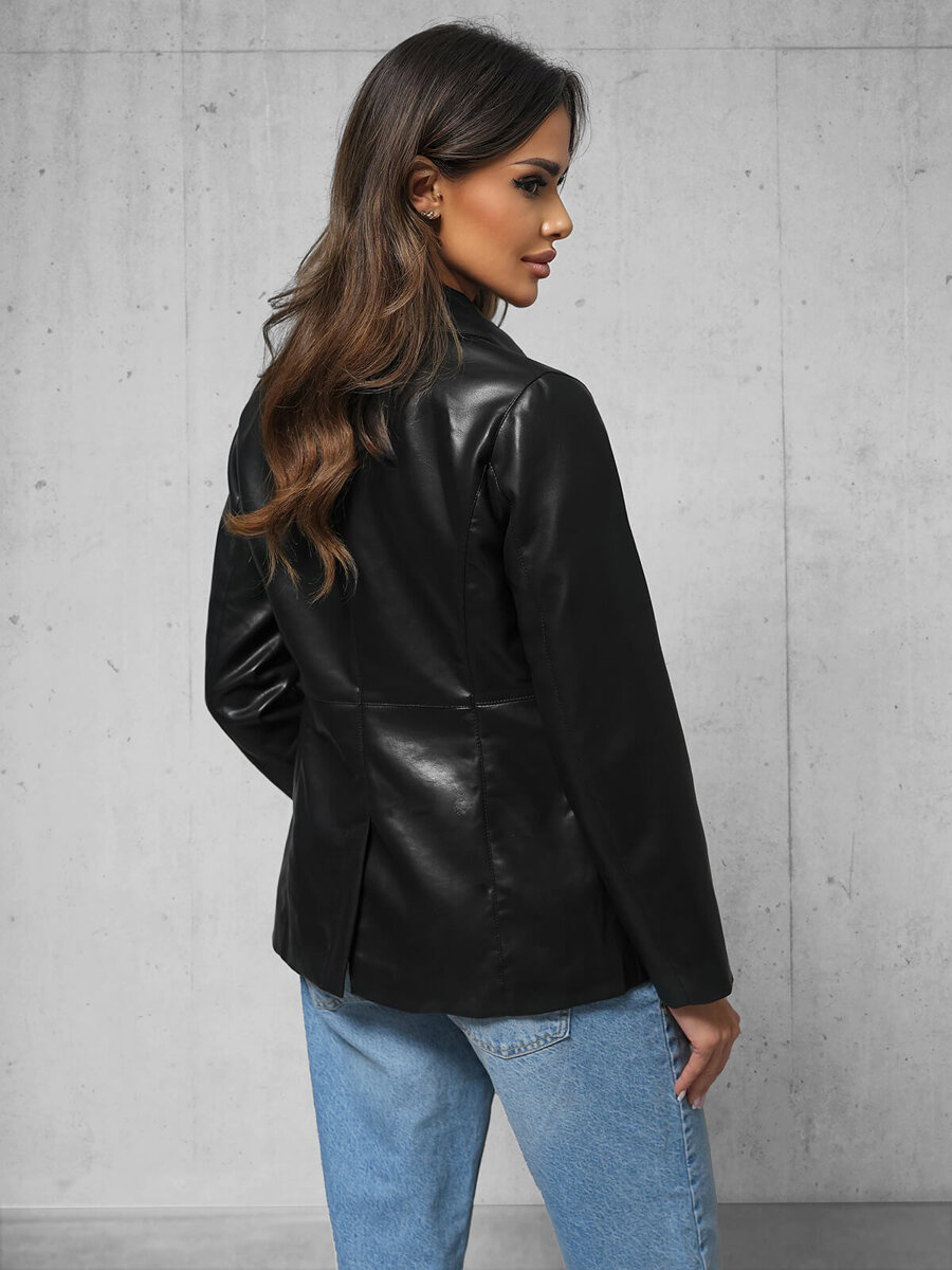 Jachetă din piele de damă neagră OZONEE JS/11Z8121 - eleganța întâlnește confortul