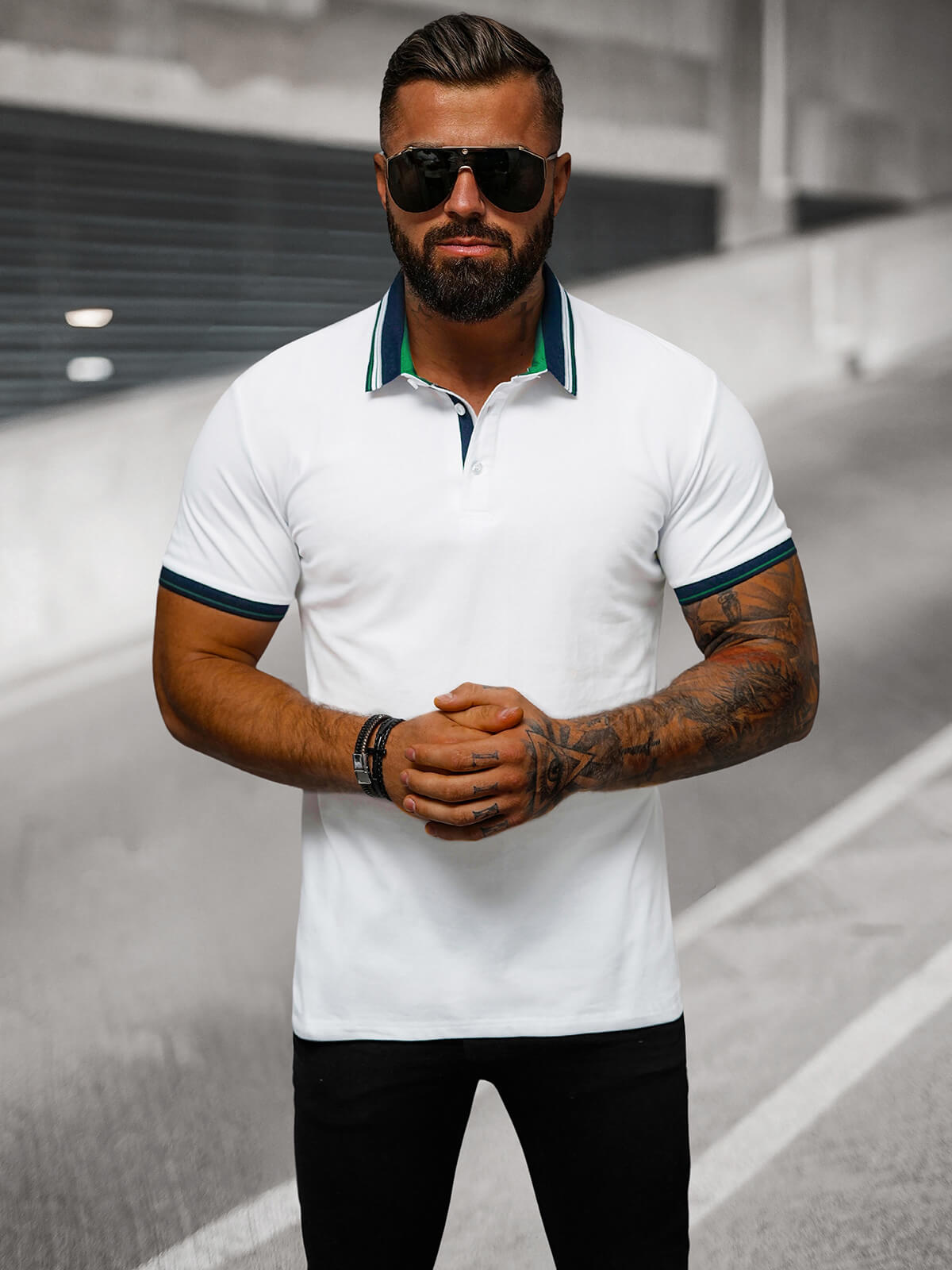 Eleganță și confort într-unul singur - OZONEE polo alb pentru bărbați O/DA736