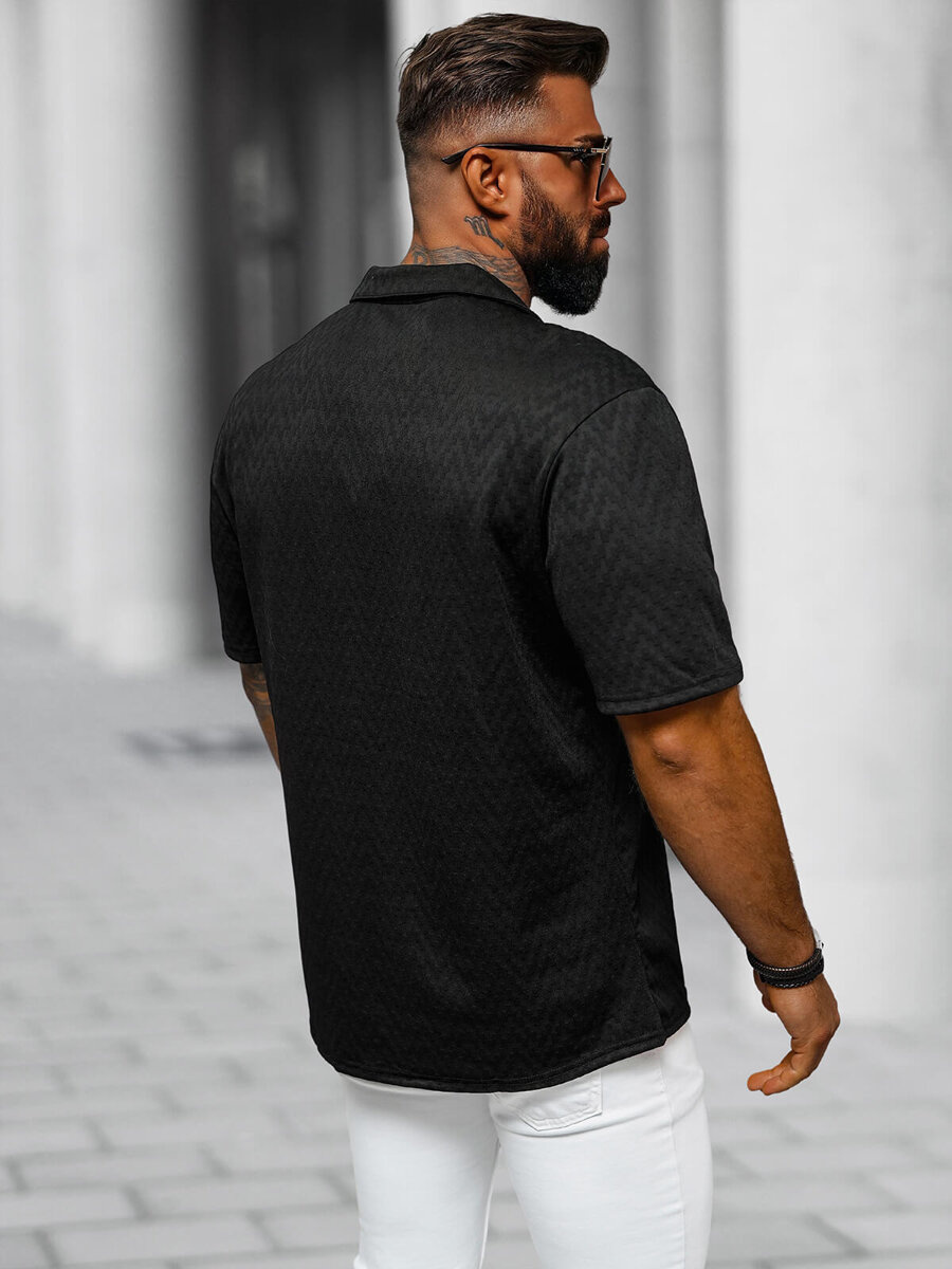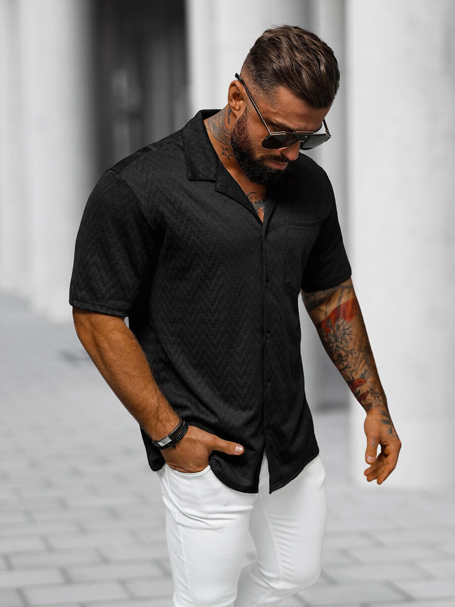 Stil și eleganță masculină - Cămașă cu mânecă scurtă pentru bărbați negru OZONEE O/3C319