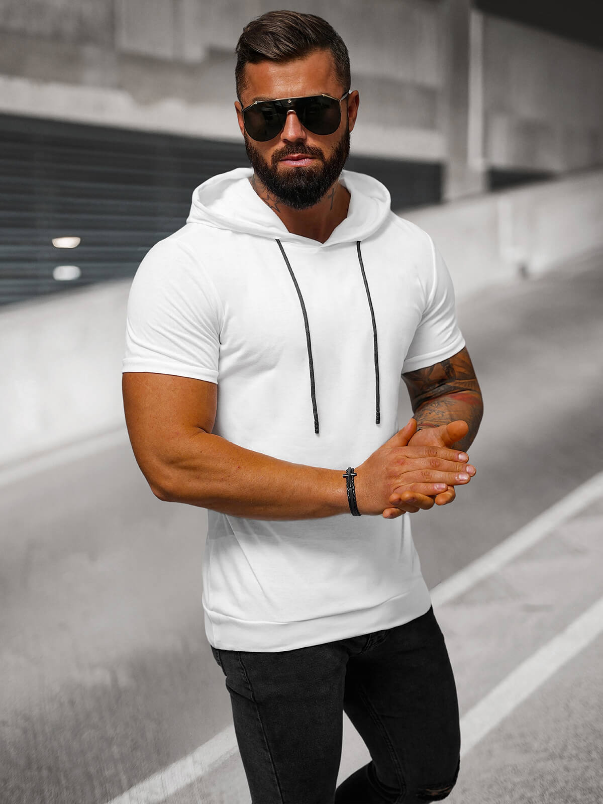 Tricoul alb cu glugă pentru bărbați OZONEE JS/8T955/1 este o alegere excelentă pentru a fi purtat în fiecare zi, la serviciu, la sală sau la o întâlnire cu prietenii. Se va potrivi atât cu ținutele casual, cât și cu cele sport. Asortați-l cu blugi, pantaloni chinos sau pantaloni scurți. Arată foarte bine atât solo, cât și sub o jachetă sau un hanorac. Datorită combinației de culori neutre, se potrivește cu majoritatea articolelor de îmbrăcăminte.