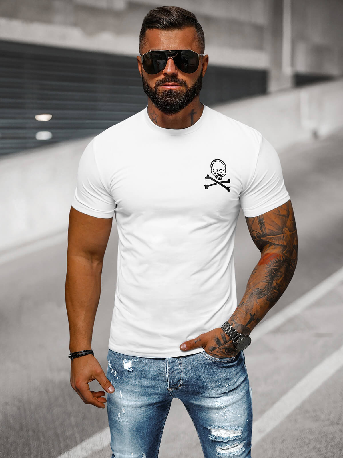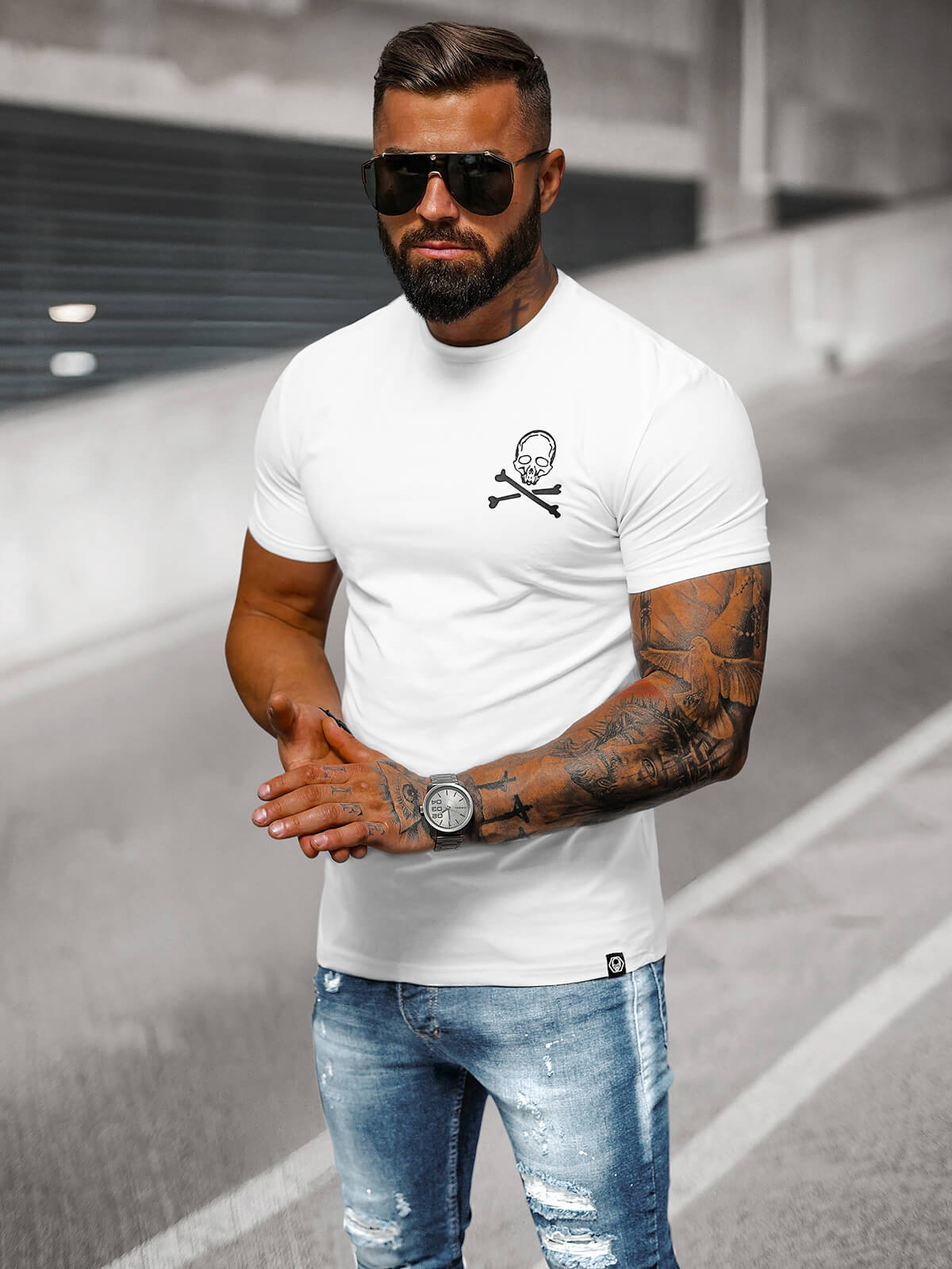 Tricou slimfit modern pentru bărbați alb OZONEE NB/MT3066 - un accesoriu la modă pentru garderoba ta