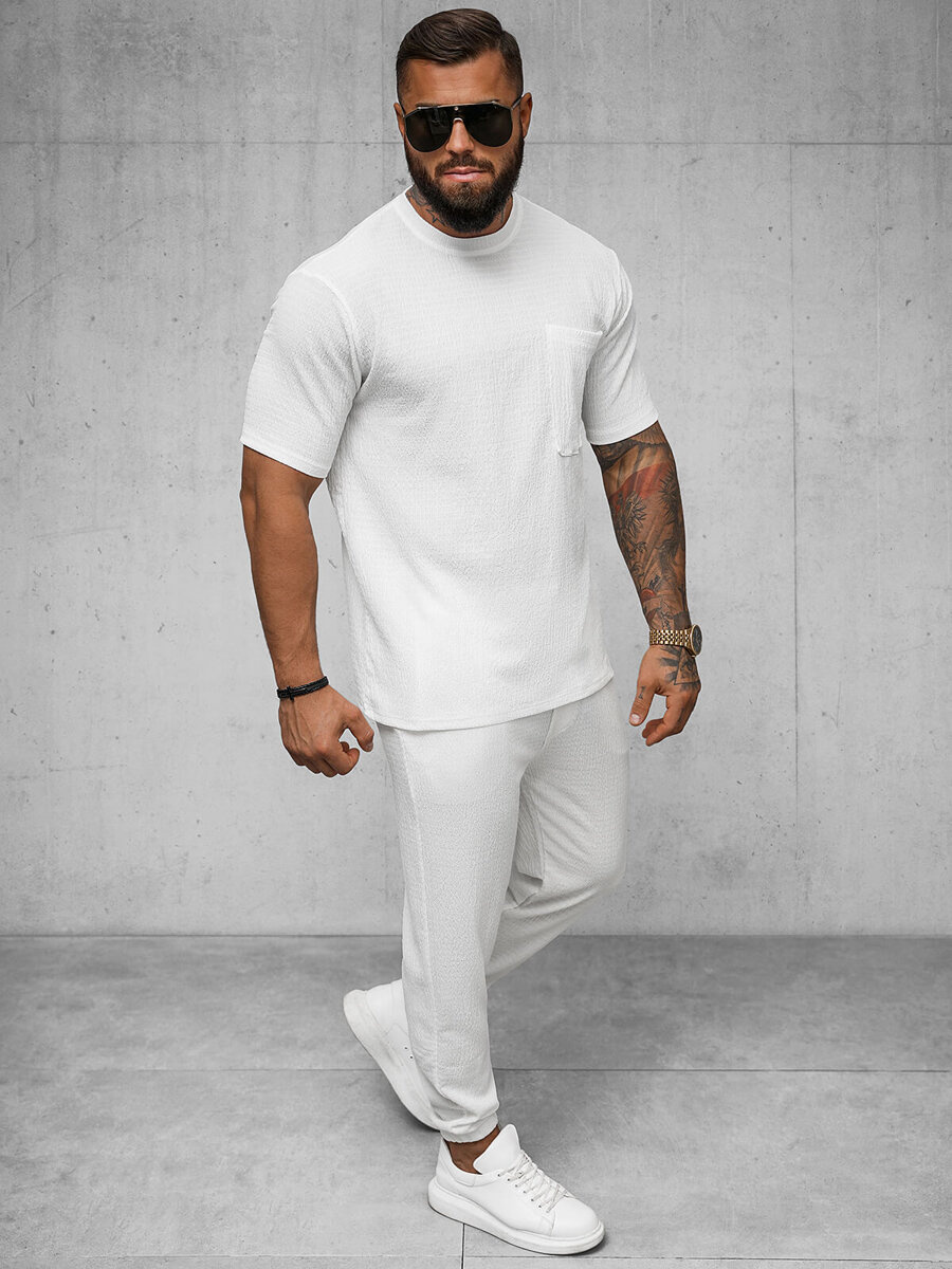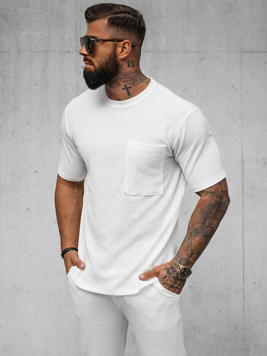 Accentuează-ți stilul cu tricoul alb pentru bărbați OZONEE O/Y960T