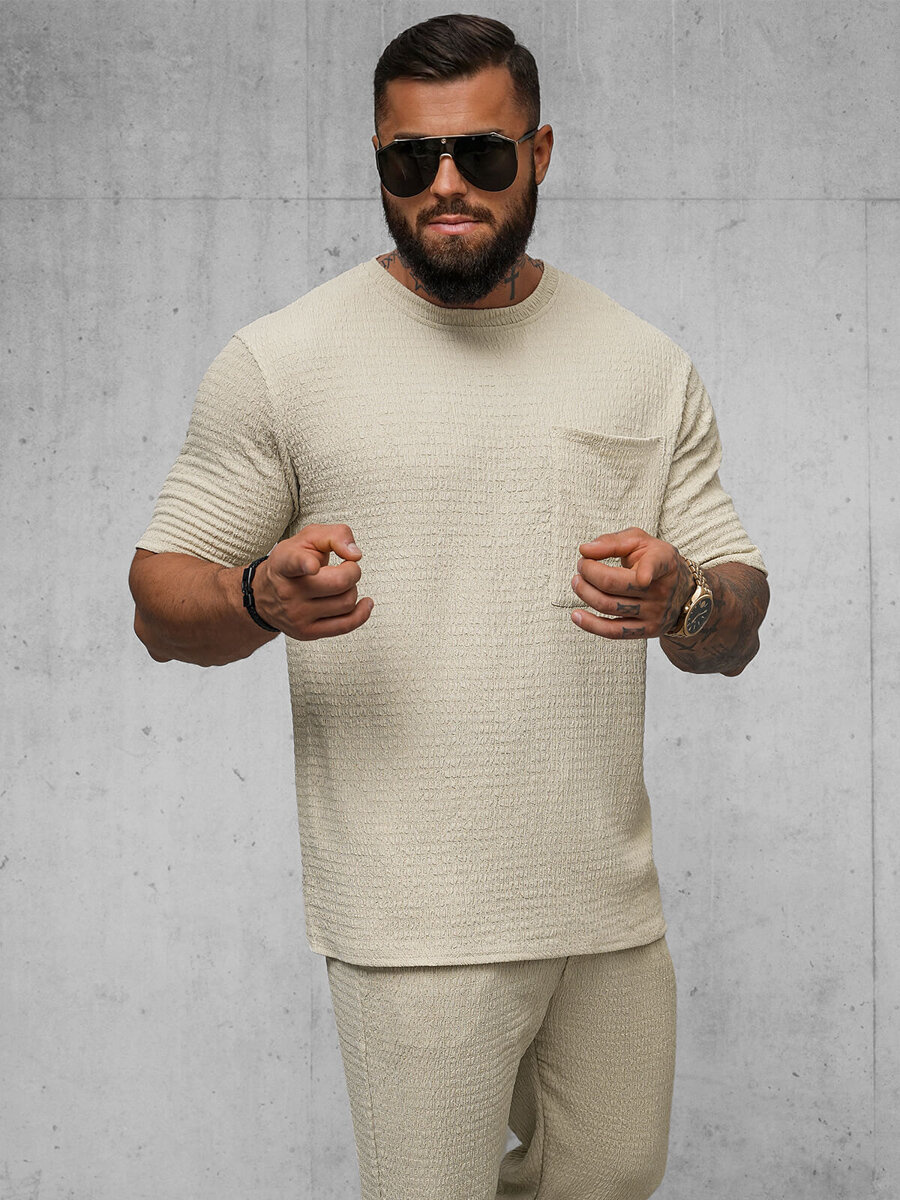 Stil și confort excepționale - Tricou bej pentru bărbați OZONEE O/Y960T