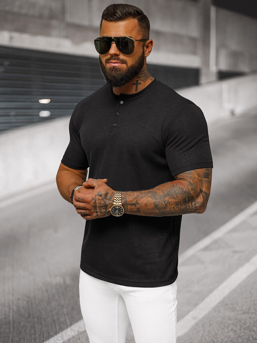 Ieși în evidență din mulțime cu tricoul pentru bărbați OZONEE O/L1451, care combină ultimele tendințe în materie de modă cu caracterul practic și confortul la purtare. Acest tricou elegant din cea mai recentă colecție, realizat din materialu respirabil, oferă condiții ideale chiar și în zilele fierbinți de vară. O trăsătură caracteristică a acestui model este închiderea cu trei nasturi și buzunarul practic din față. Datorită combinației universale de culori negre, acest tricou va deveni baza pentru multe ținute la modă.