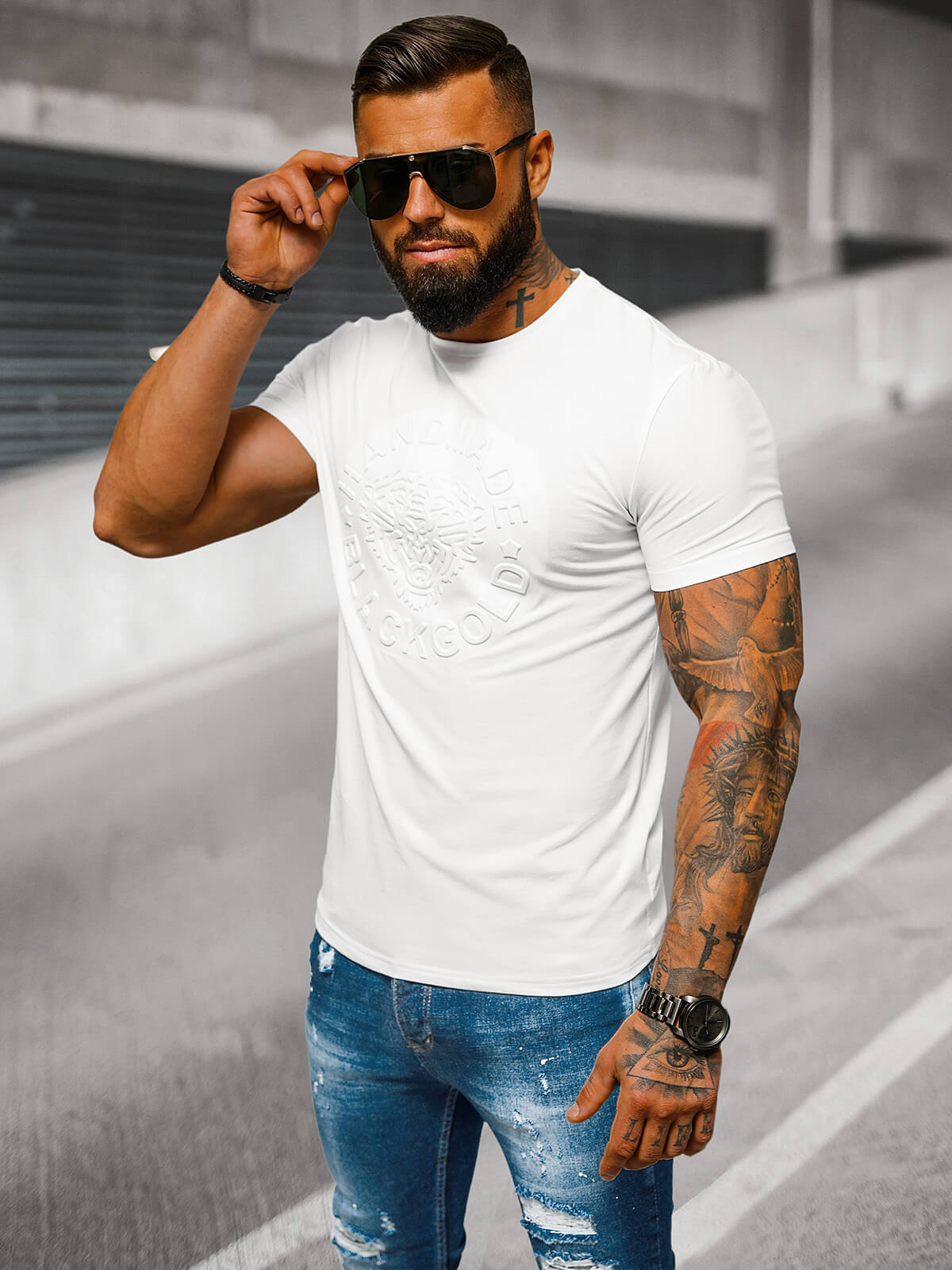 Tricou bărbați alb OZONEE NB/MT3056Z