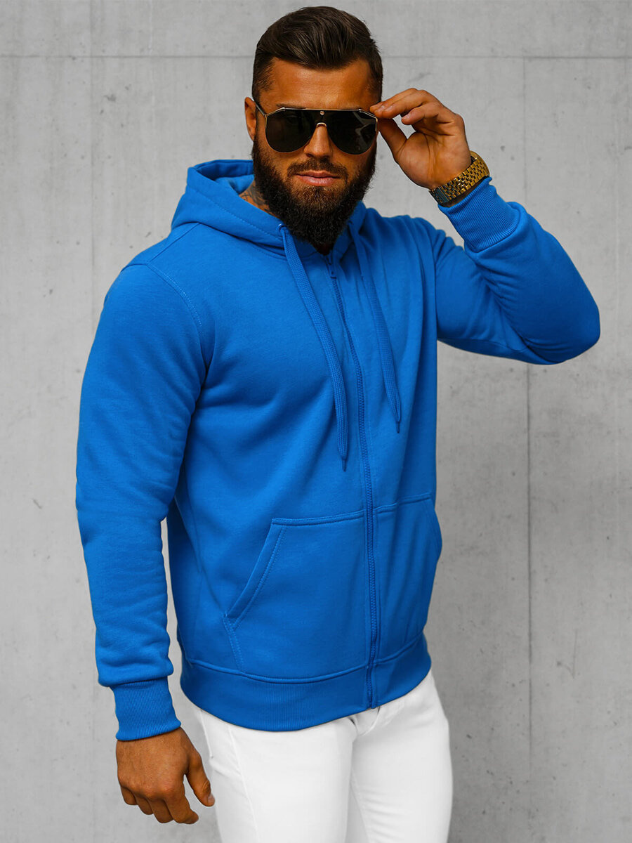 Hanorac cu glugă cu fermoar albastru elegant și funcțional pentru bărbați OZONEE JS/2008Z