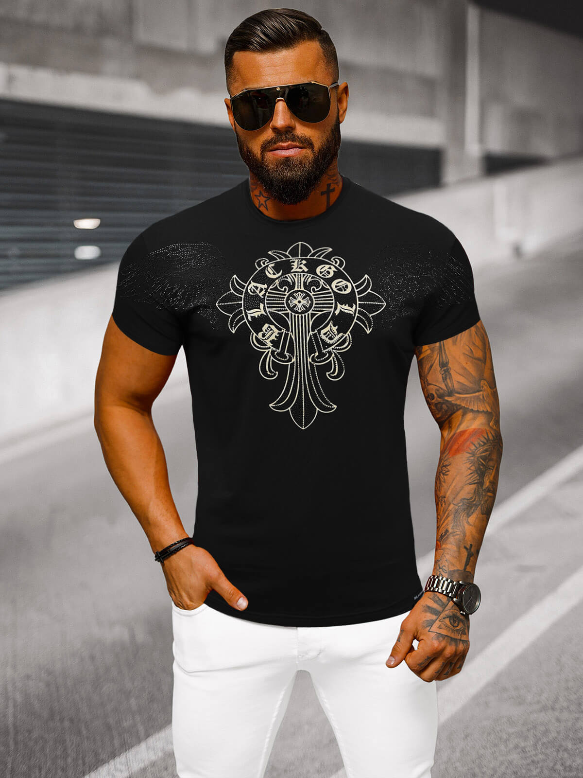 Tricou bărbați negru OZONEE NB/MT3037Z