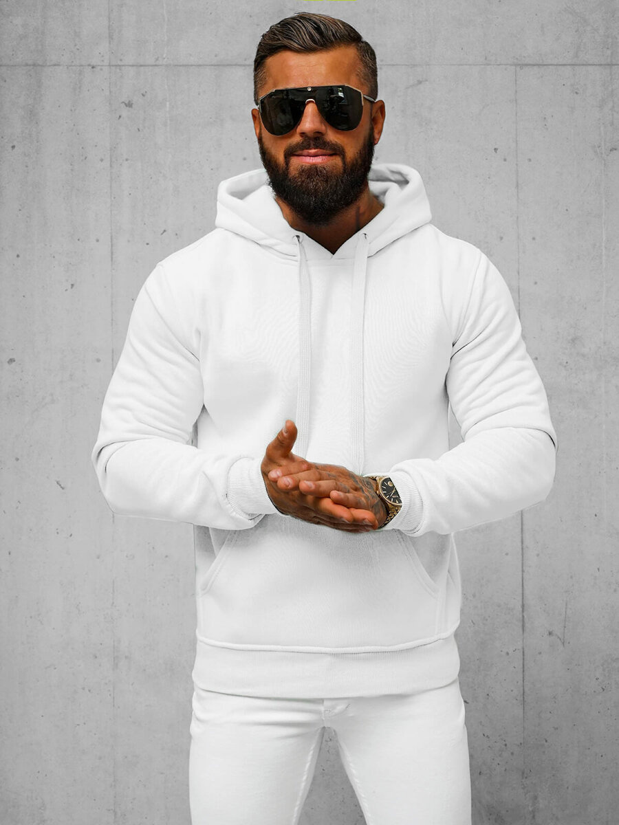 Hanorac cu glugă elegant și confortabil pentru bărbați alb OZONEE JS/2009Z