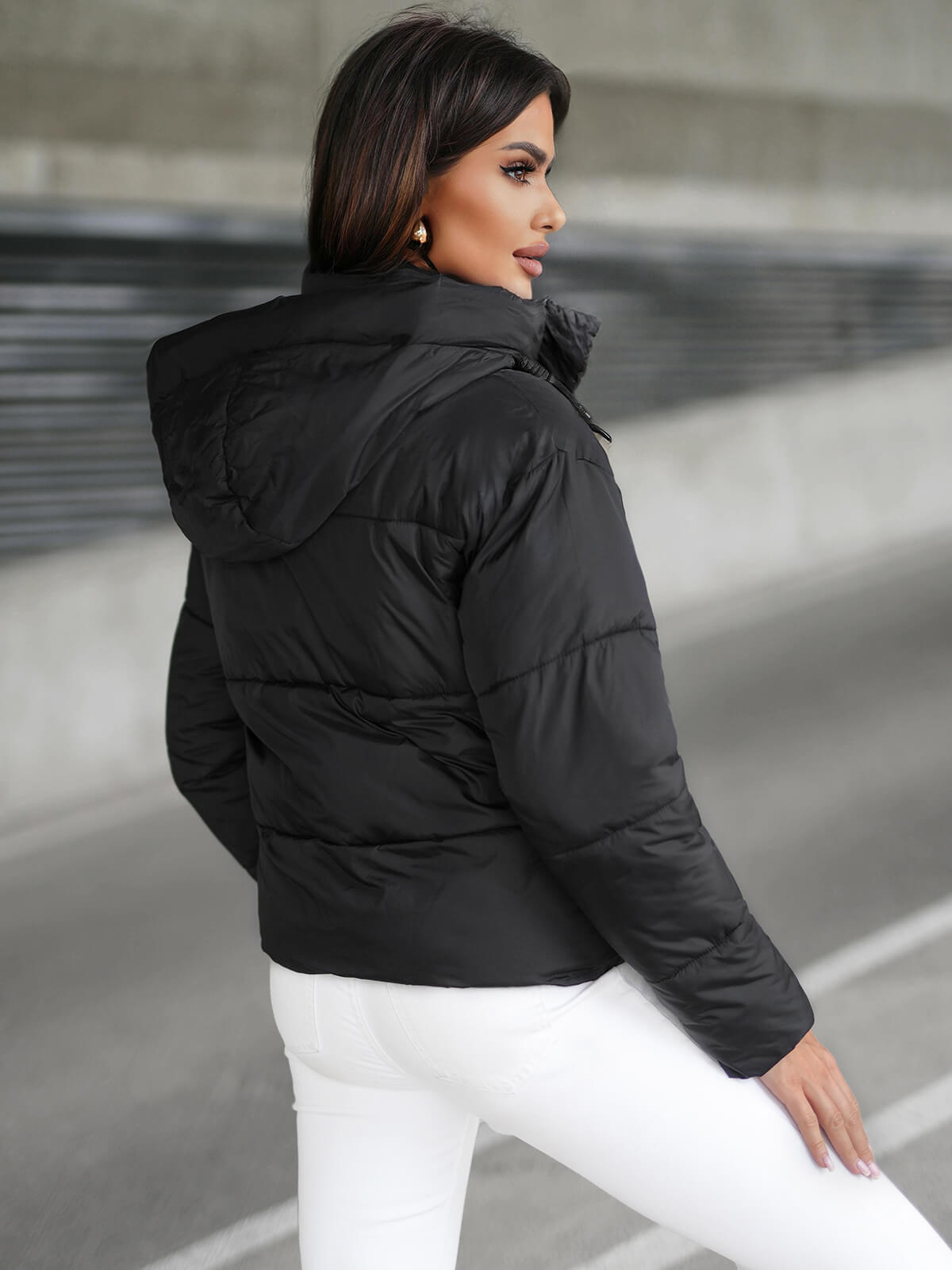 Eleganță și funcționalitate într-unul singur - Jachetă de iarnă pentru femei matlasată negru OZONEE JS/16M9188/392