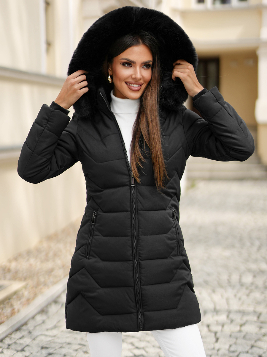 Jacheta lungă de iarnă pentru femei prezentată, cu blană, de culoare neagră, este o combinație de eleganță și funcționalitate. Confecționată din materialów de cea mai bună calitate, oferă confort și căldură chiar și în cele mai reci zile. Matlasarea la modă îi adaugă un caracter unic, iar gluga detașabilă cu blană este o soluție practică pentru condițiile meteo schimbătoare. Jacheta cu fermoar, cu buzunare laterale, este o parte esențială a garderobei de iarnă a fiecărei femei.