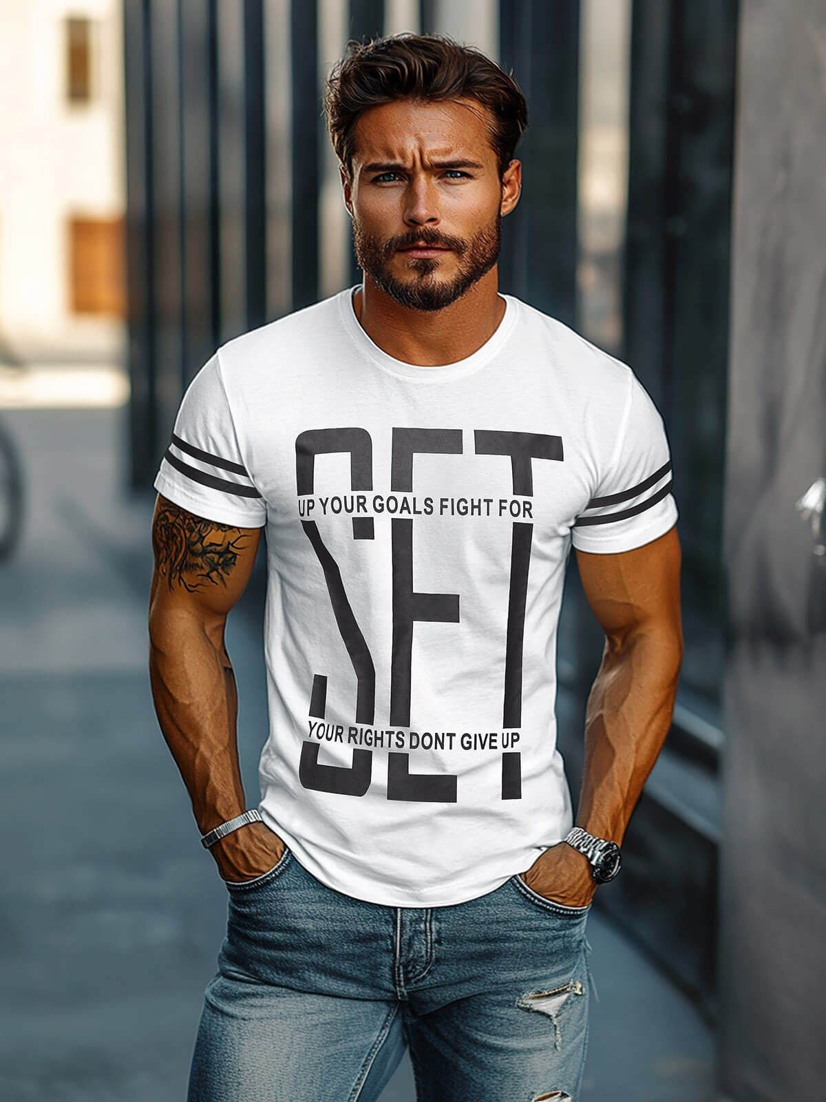 Tricoul alb pentru bărbați OZONEE O/8T1275/1 este o adevărată capodoperă în rândul vestimentației masculine. Realizat dintr-o țesătură tricotată confortabilă, acesta garantează un confort de purtare de neegalat pe tot parcursul zilei. Imprimeul izbitor de pe față și mâneci adaugă o notă unică, diferențiindu-l de alte tricouri. Acesta este un produs din cea mai recentă colecție, care combină modernitatea cu stilul clasic.