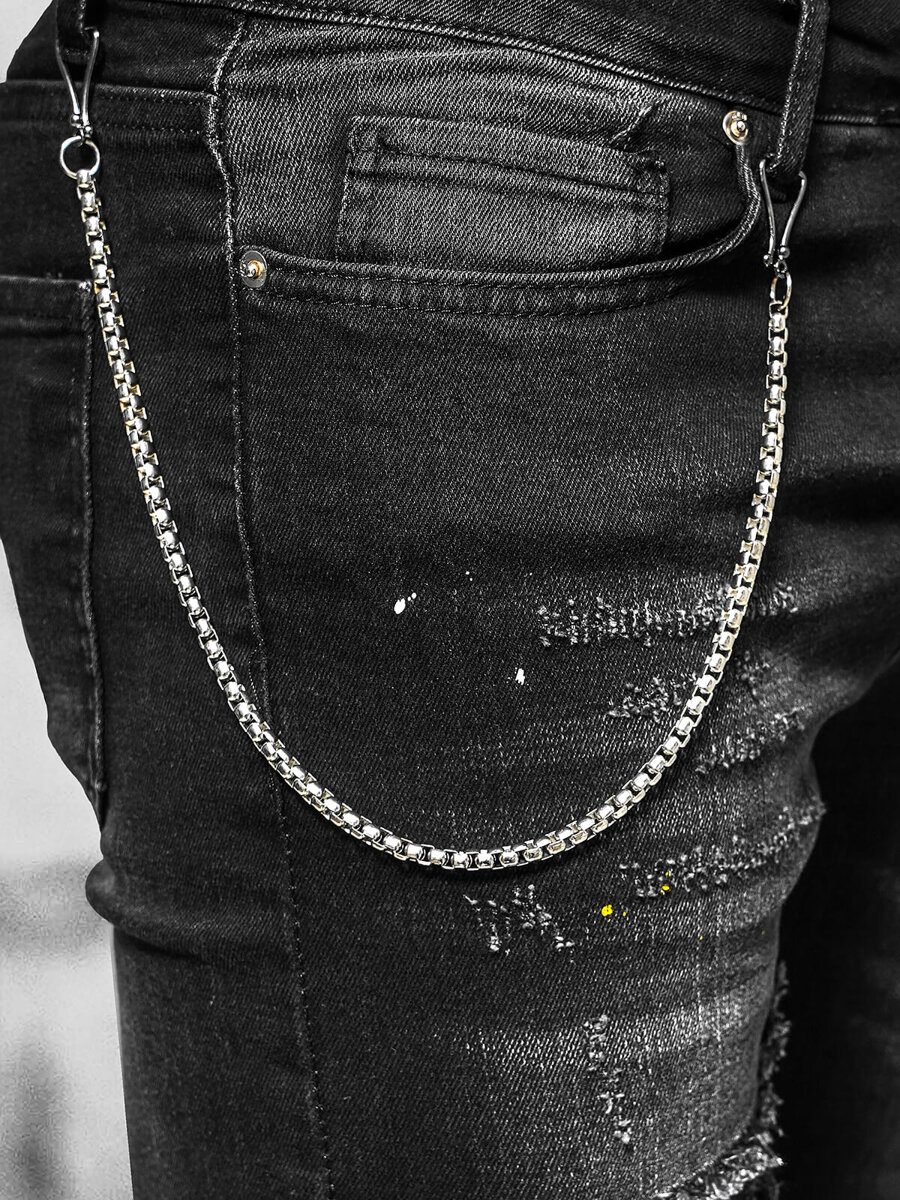 Acești blugi slim fit pentru bărbați sunt o combinație de confort și design la modă. Se potrivesc perfect, subliniind silueta și permițând în același timp libertatea de mișcare. Frecarea la modă adaugă caracter, în timp ce lanțul decorativ detașabil este un detaliu care atrage atenția. Buzunarele din față și din spate nu sunt doar practice, ci oferă și un element decorativ.