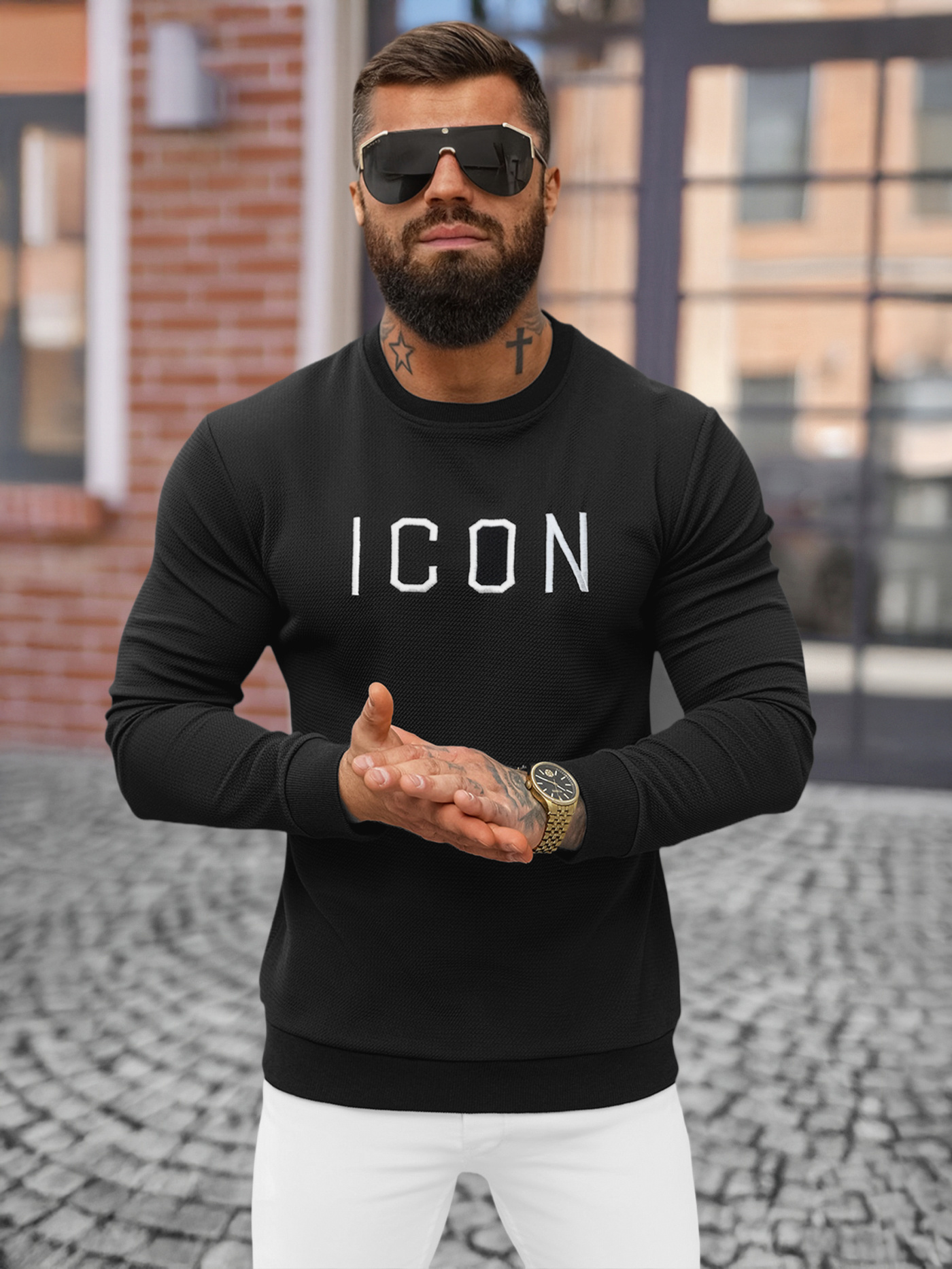 - Modelul (182 cm, 87 kg) poartă mărimea XL.