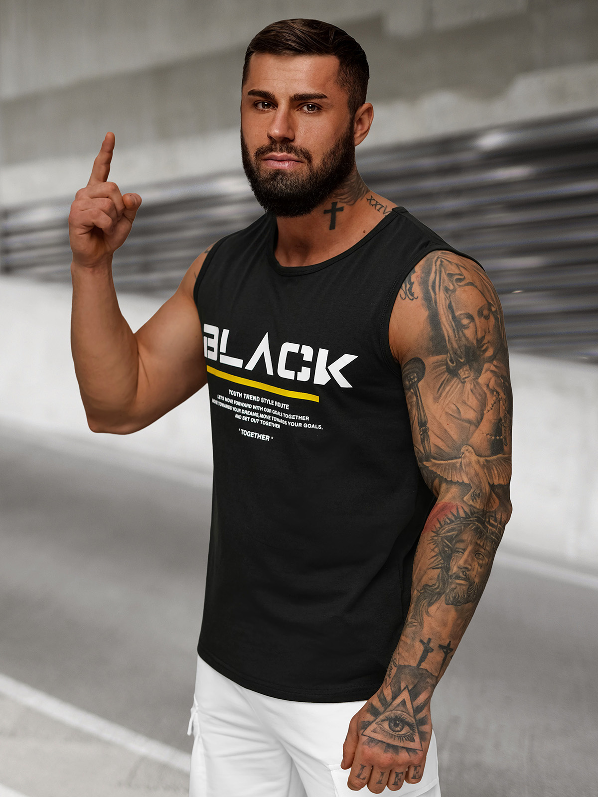 - Modelul (182 cm, 87 kg) poartă mărimea XL.