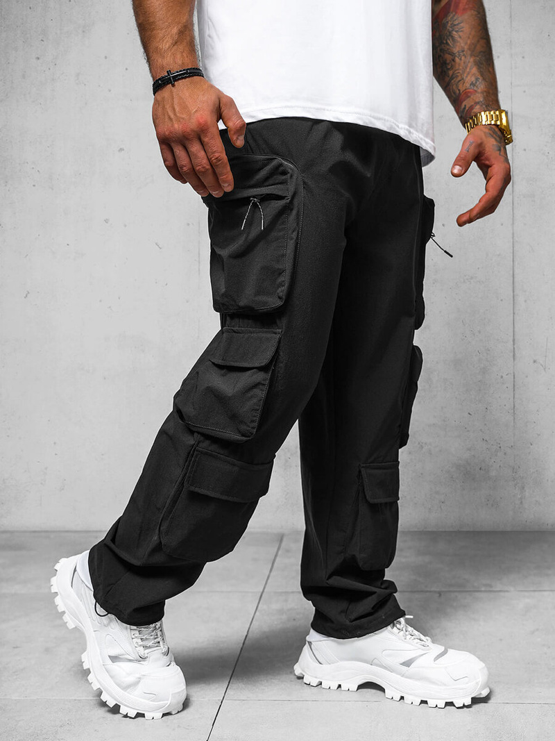 Pantaloni cargo cu picior lat pentru bărbați negri OZONEE O/PS5528 - O alegere la modă pentru bărbatul modern