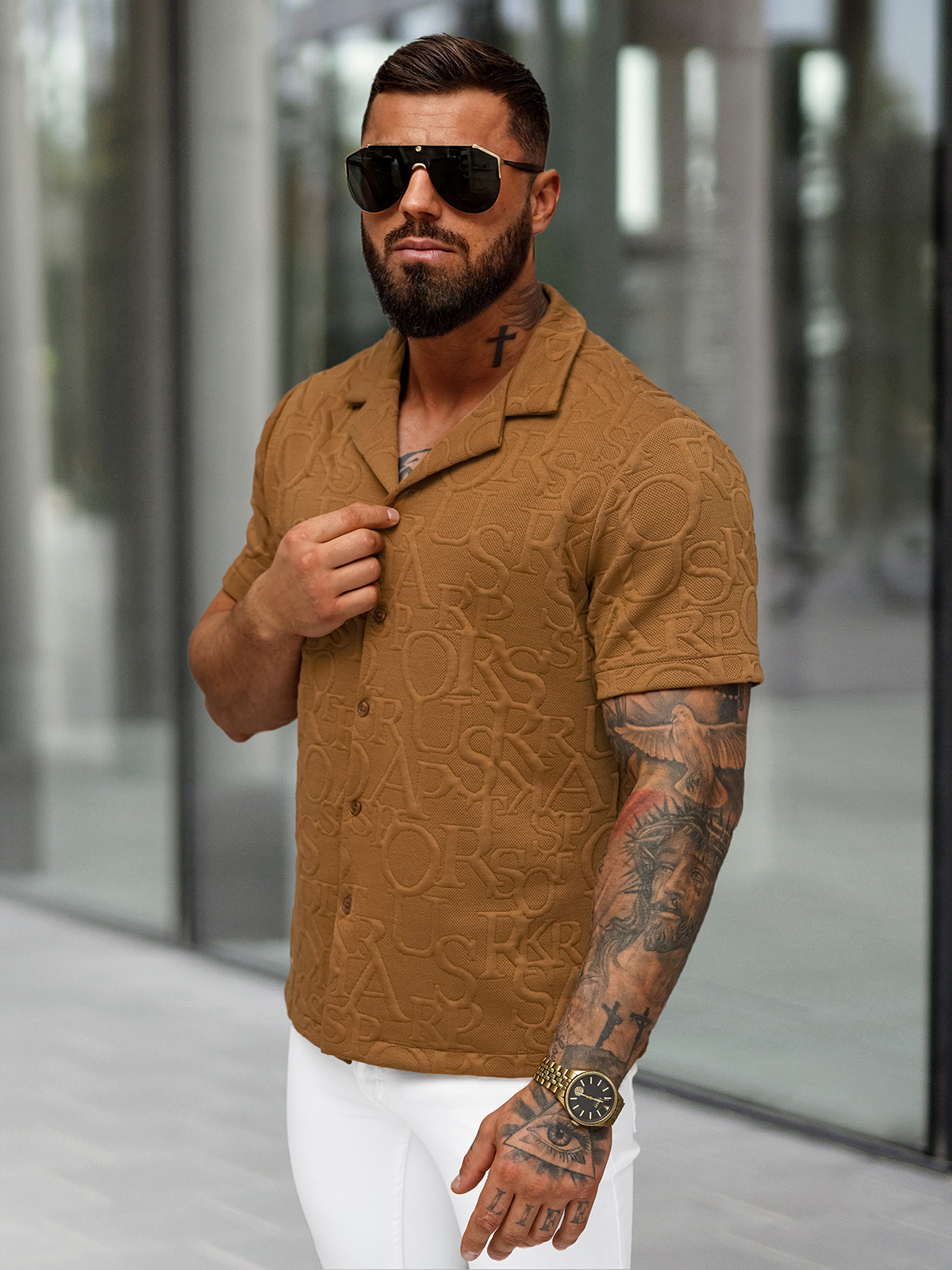 Cămașă cu mâneca scurtă bărbați maro OZONEE O/B2256