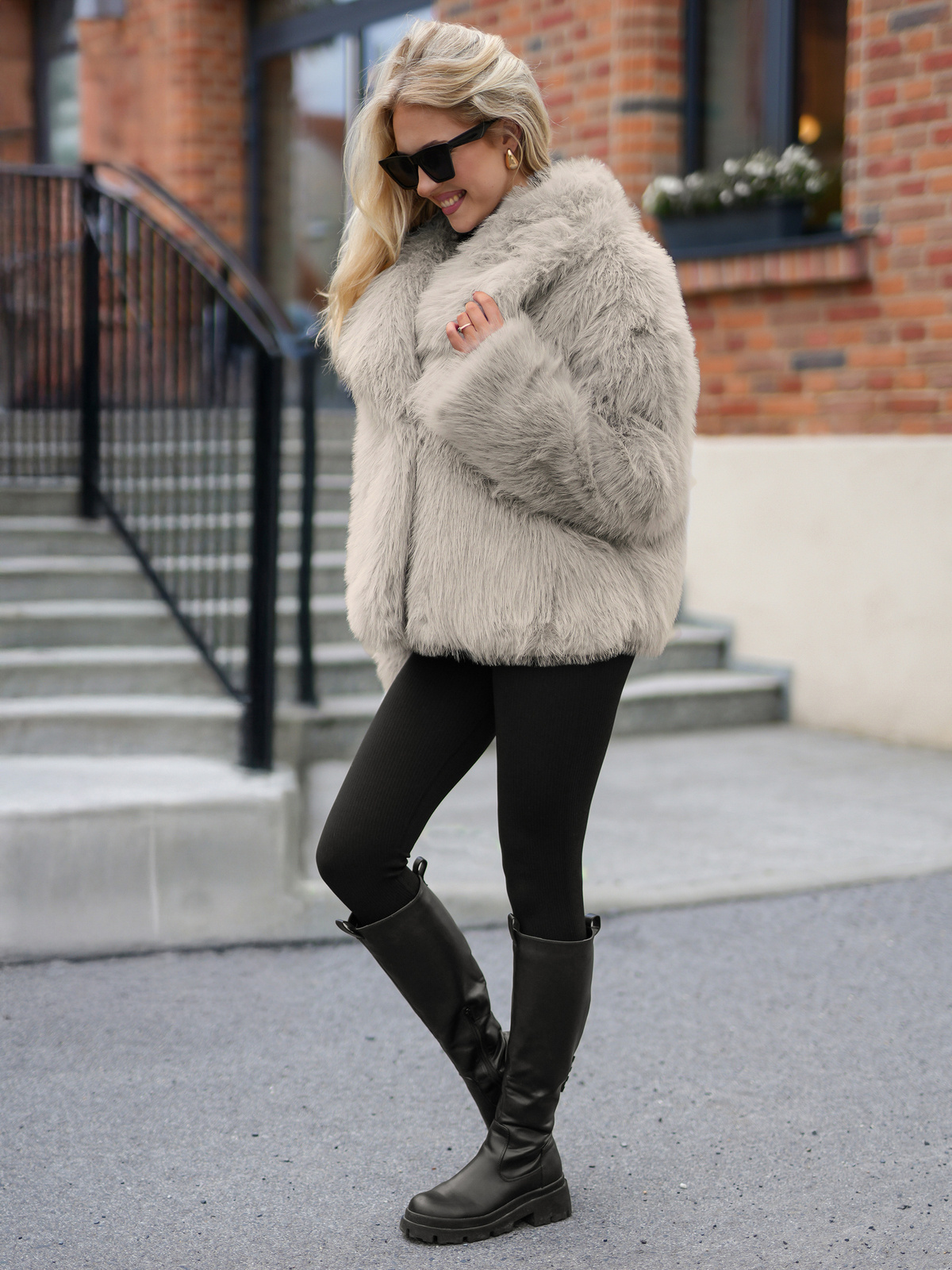 - Modelul (172 cm) poartă mărimea S/M.