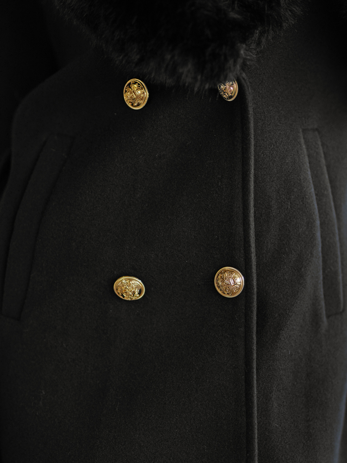 - Acest palton clasic din poliester are o lungime pana la genunchi, se inchide cu nasturi si are un guler cu blana detasabil pentru o potrivire perfecta