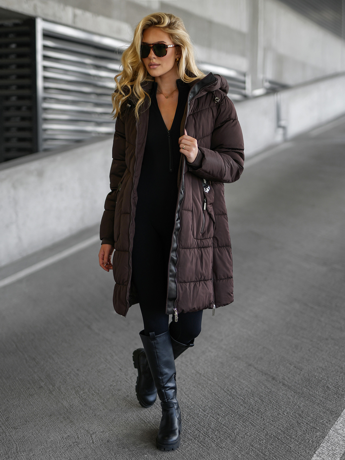 - Această geacă clasică, cu lungime sub șold, este prevăzută cu fermoar și capse, având glugă și blană detasabile pentru versatilitate