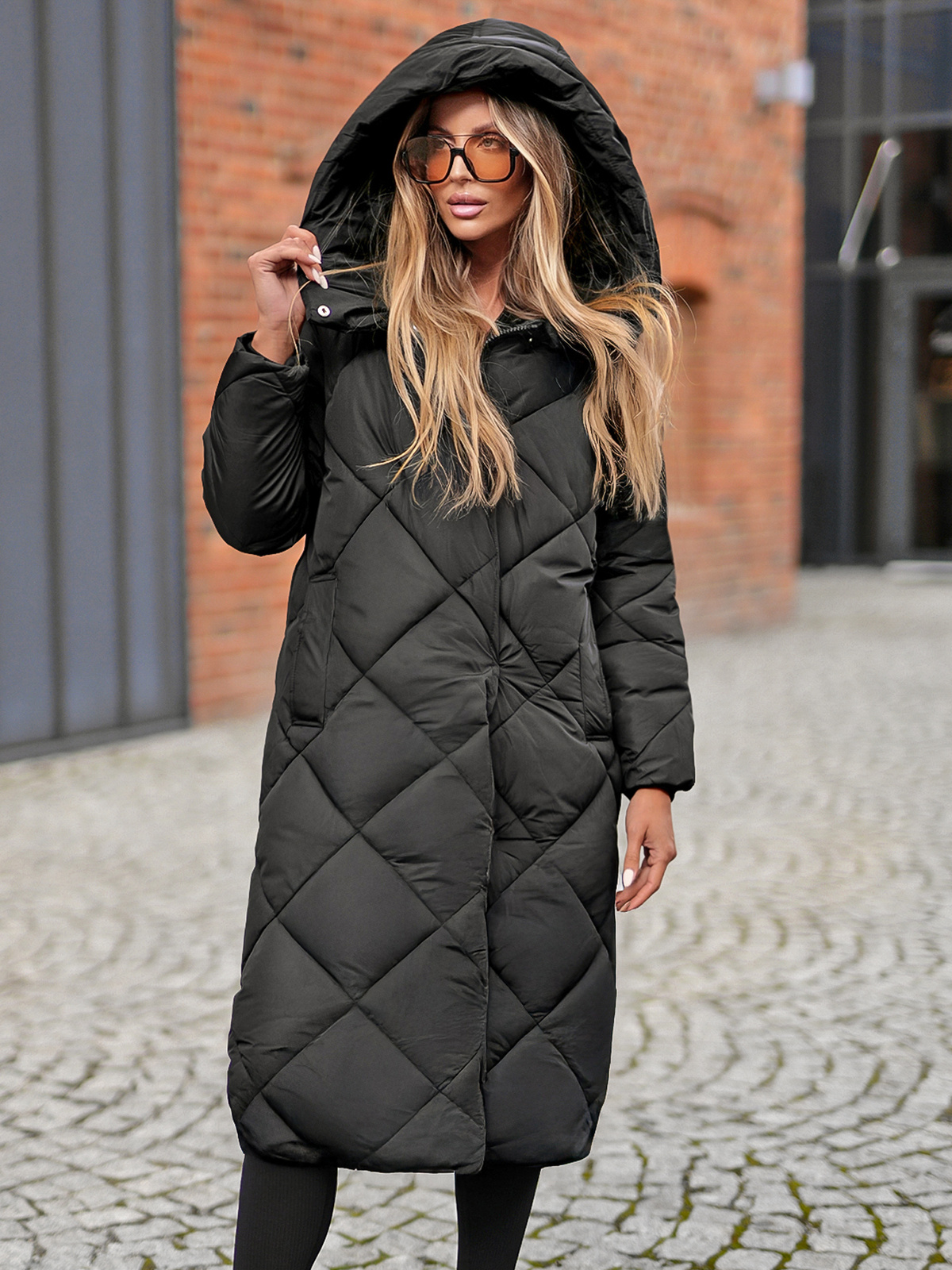 Jachetă matlasată lungă de iarnă pentru femei, negru OZONEE JS/5M3173/392