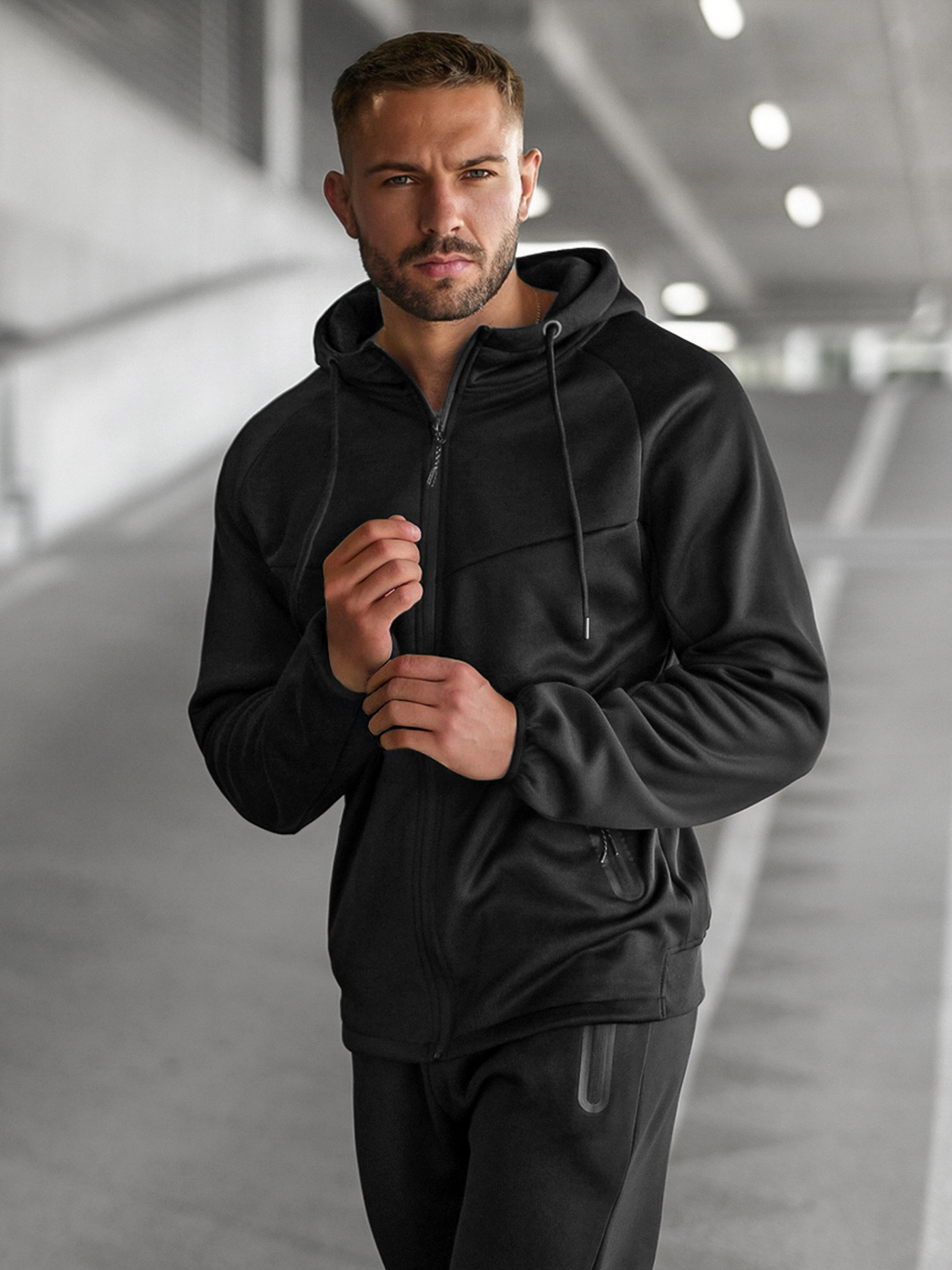 - Bluza cu fermoar și glugă reglabilă cu șnur oferă confort și stil