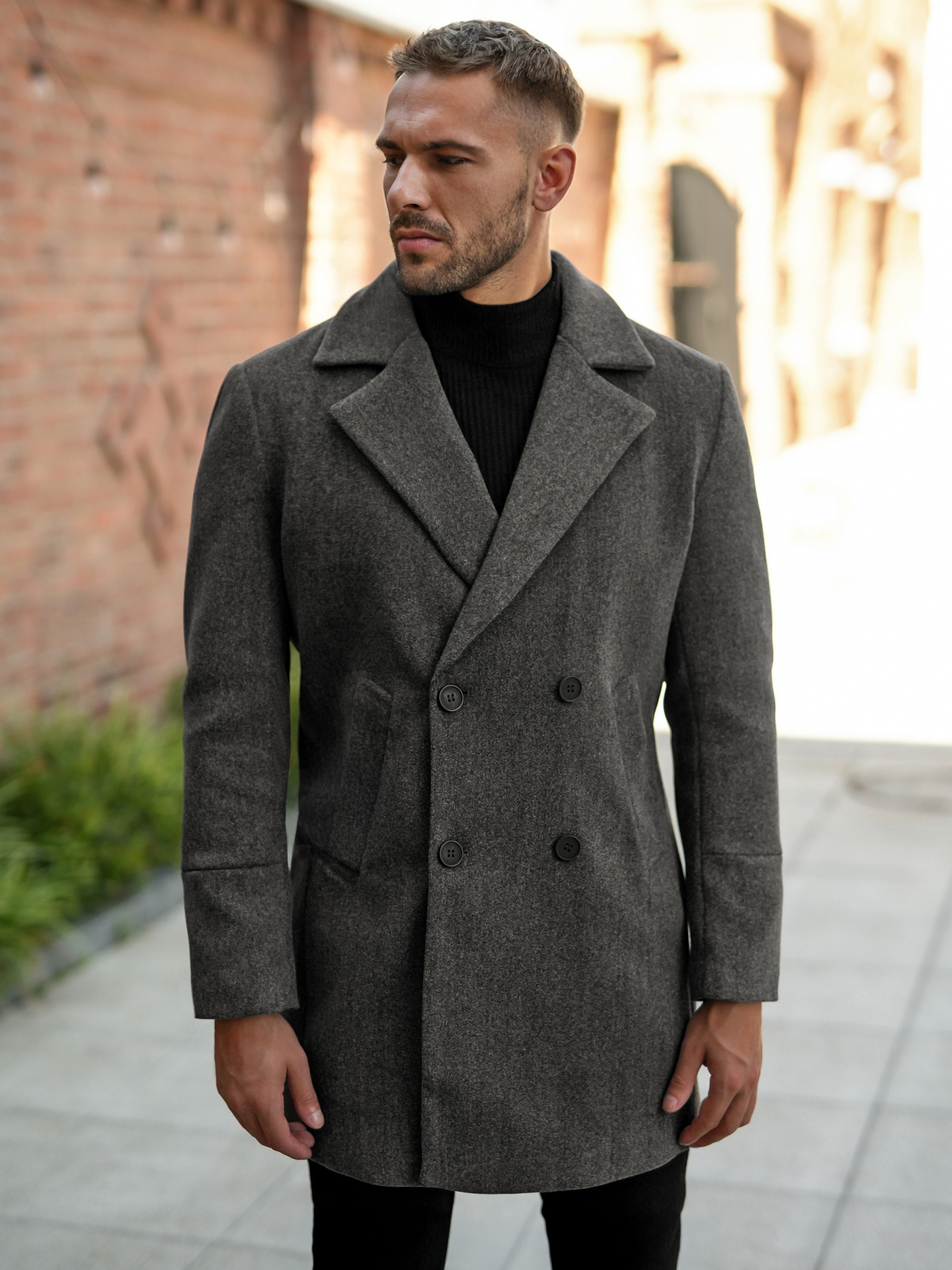 - Acest palton clasic, cu o croială dublu-rând, oferă eleganță și stil oricărei ținute