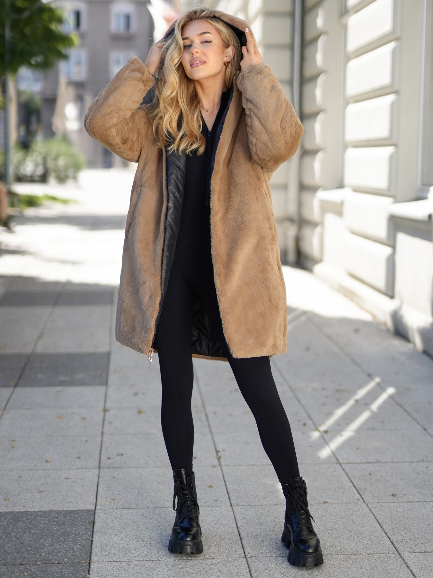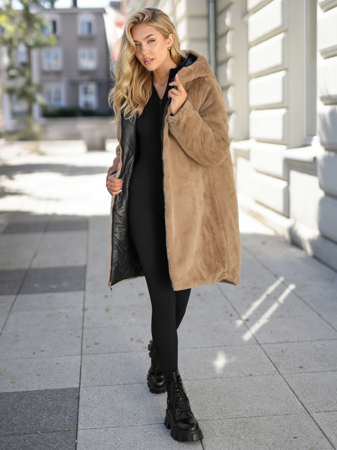 - Această geacă clasică de iarnă, lungă până deasupra genunchiului, are fermoar și capse la buzunarele laterale pentru o funcționalitate perfectă