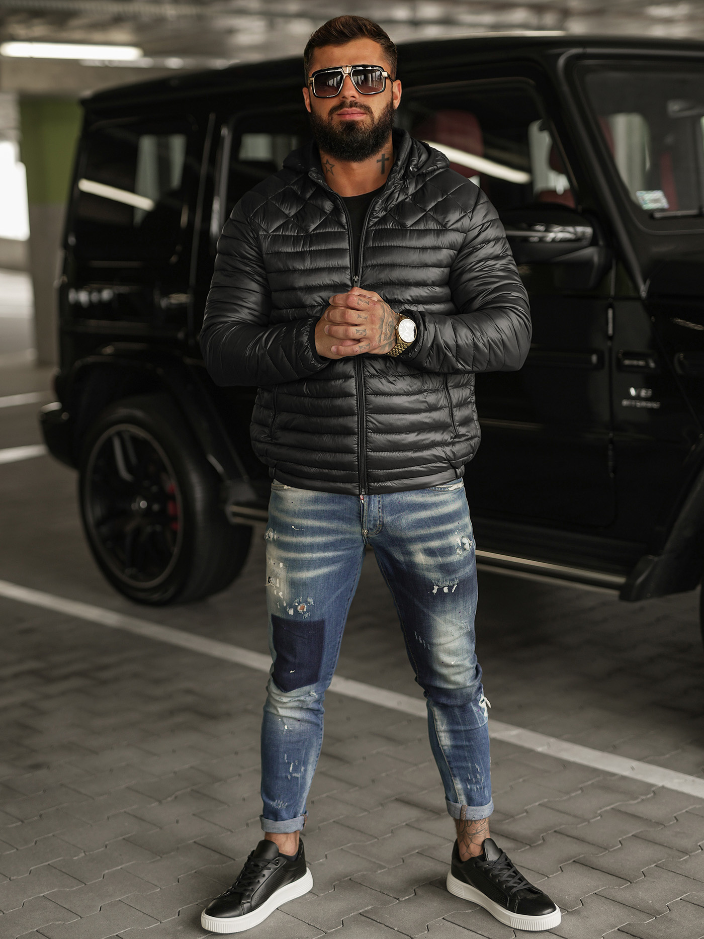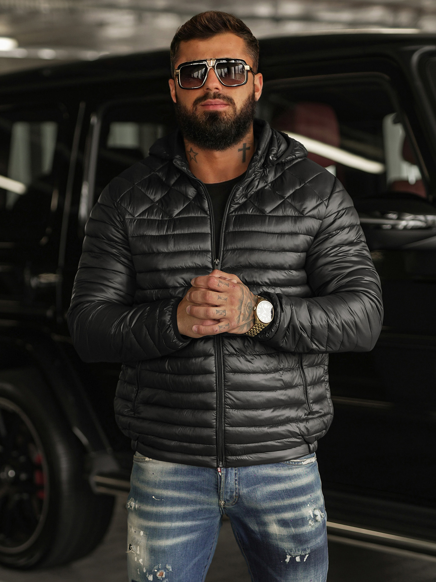 OZONEE Geacă Bărbați JS/16M9328/392B cu Glugă Detasabilă și Guler Înalt Tip Tubular