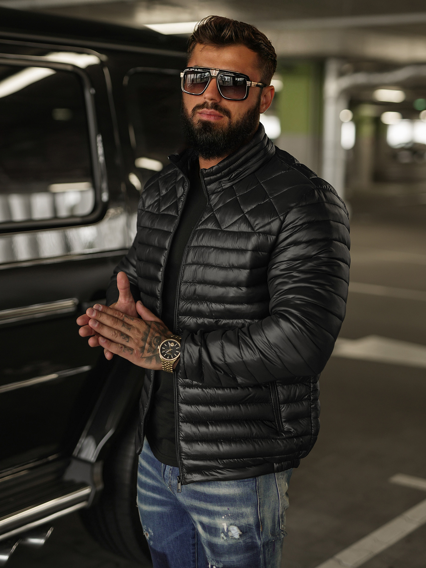 - Geaca modernă cu cusături matlasate dispune de buzunare laterale cu fermoar pentru depozitare sigură