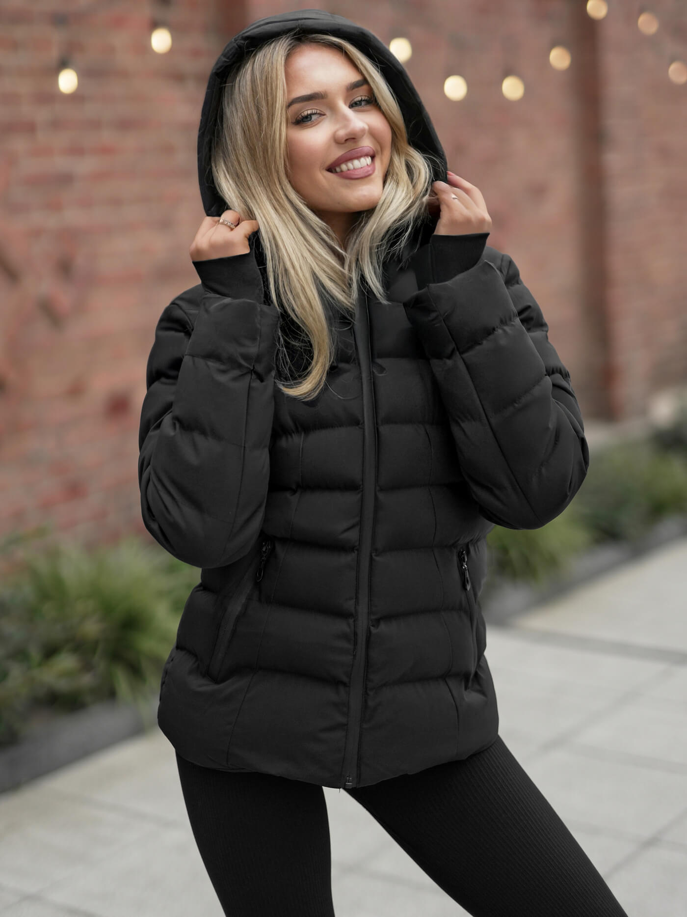 Cu fermoar, Dispune de o glugă detașabilă, Matlasare la modă, Buzunare laterale cu fermoar, Manșete cu nervuri