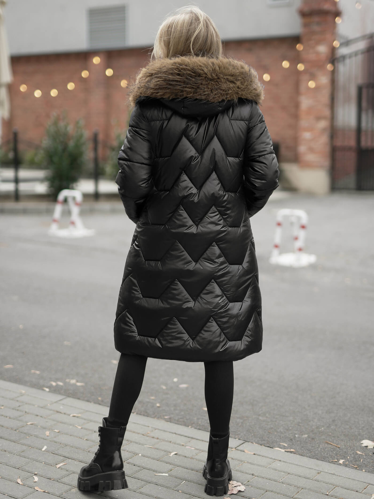 - Această geacă clasică cu lungime până la genunchi are un fermoar și glugă cu blană detașabilă, cu guler înalt tip șemineu și buzunare laterale pentru o potrivire perfectă