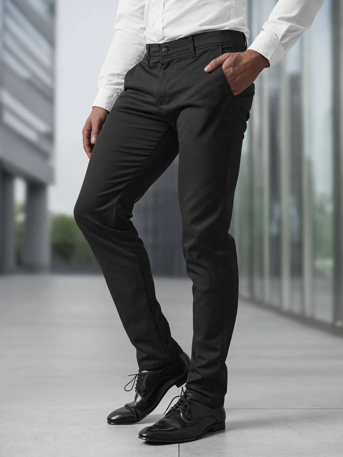 - Pantaloni chino eleganți pentru bărbați, în culoare neagră clasică – ideali pentru birou, timp liber sau ocazii speciale