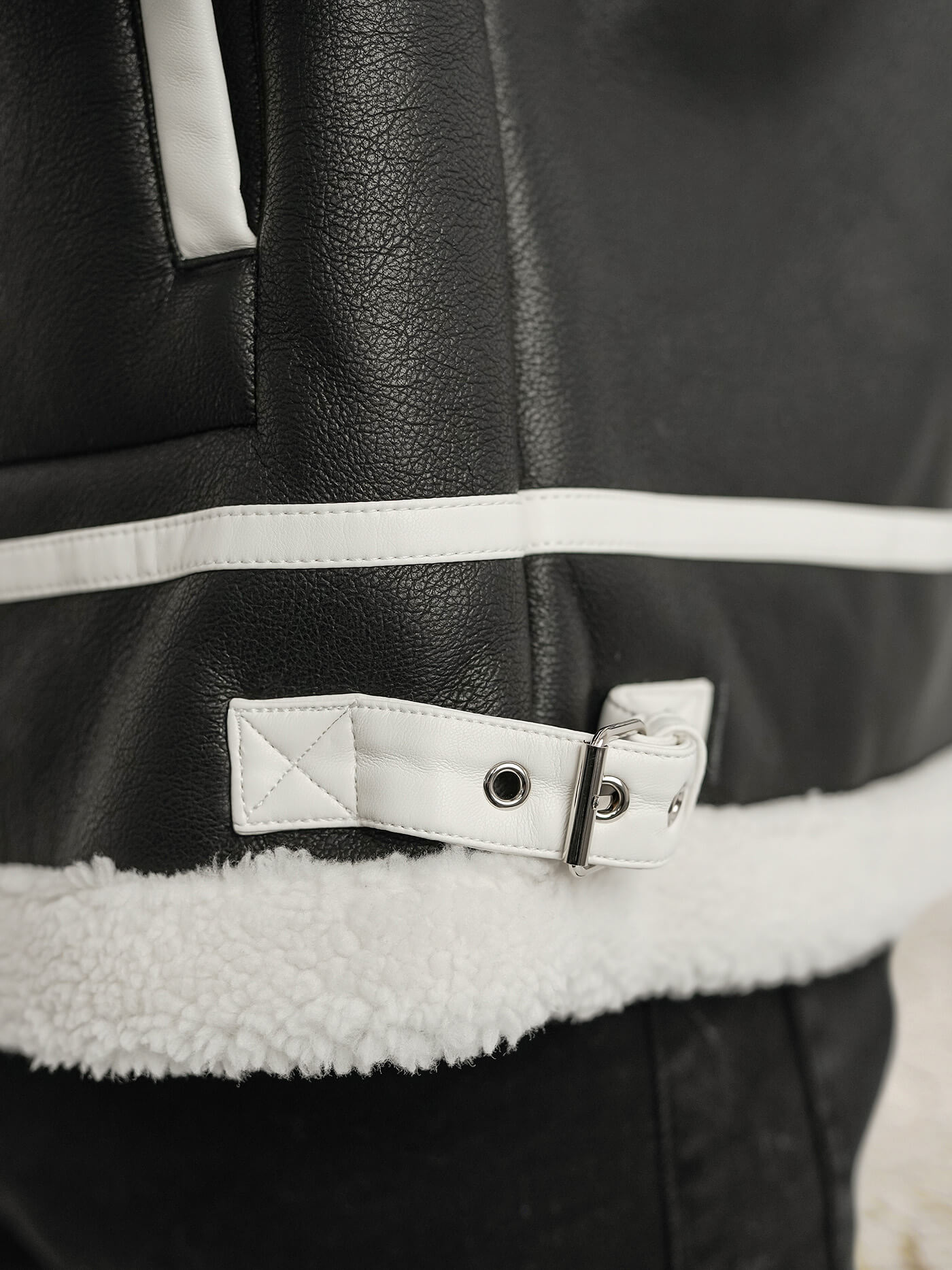 - Geacă bărbătească din piele ecologică cu guler din blăniță
