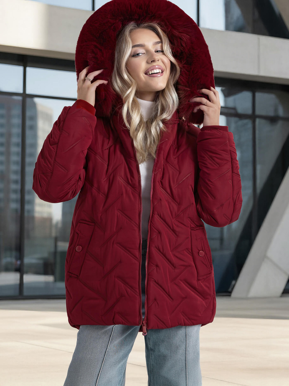 - Geacă de iarnă pentru femei cu glugă detașabilă și blăniță